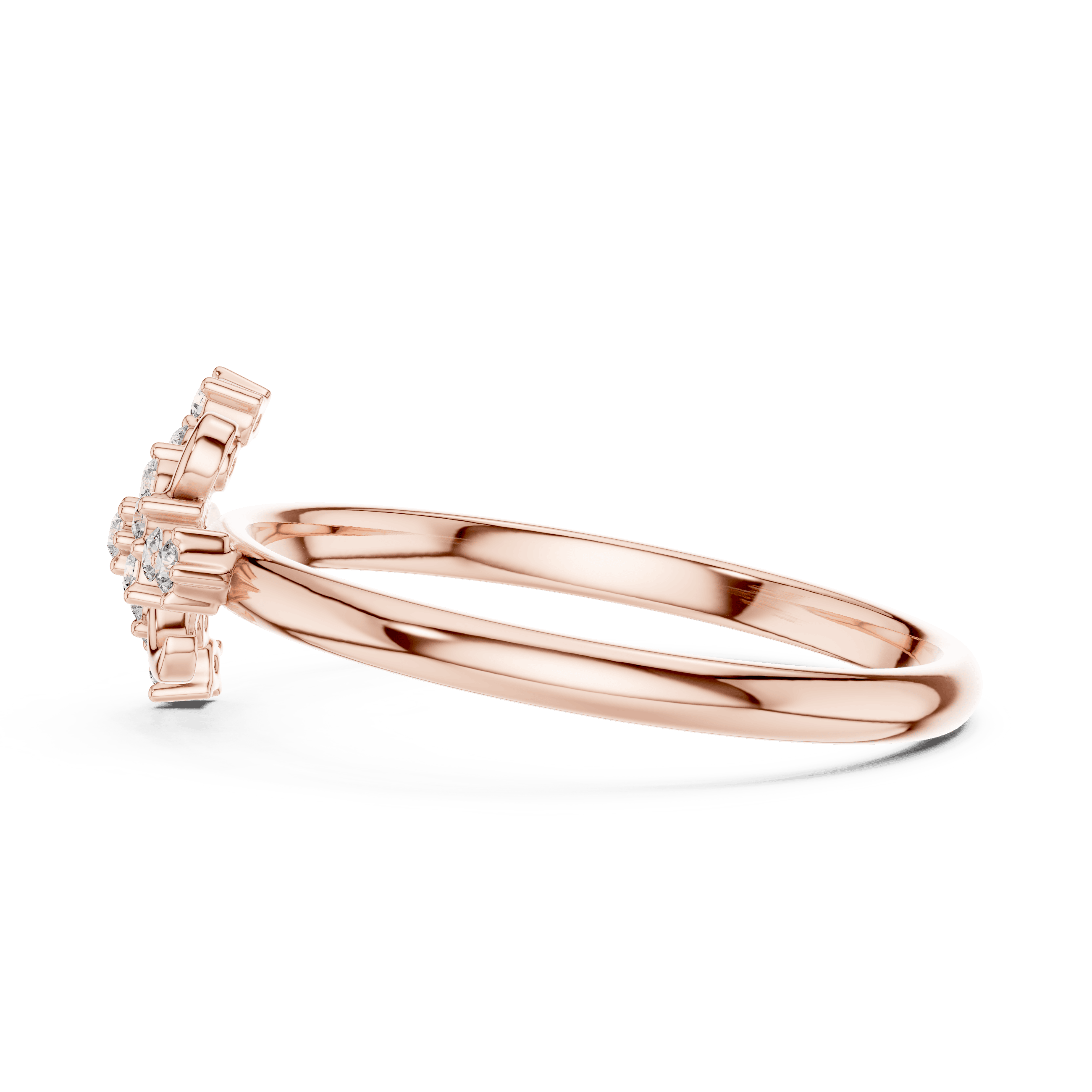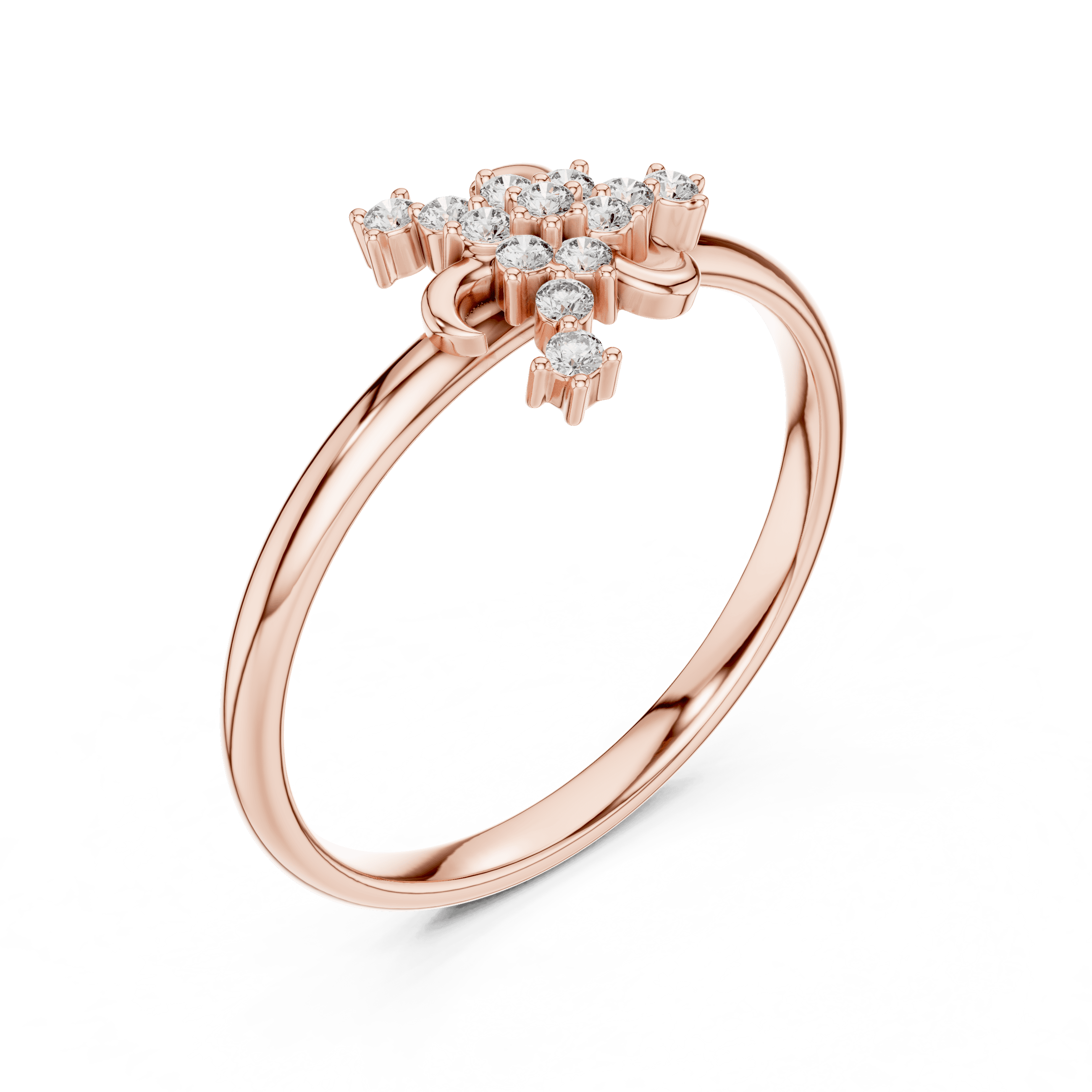 Elegant yet expressive, this delicately sculpted ring blends modern minimalism with soft ornamental detailing, creating a design that feels refined, luminous, and quietly powerful. The fluid gold band frames a graceful cluster motif, making it a versatile statement for everyday elegance as well as meaningful gifting.