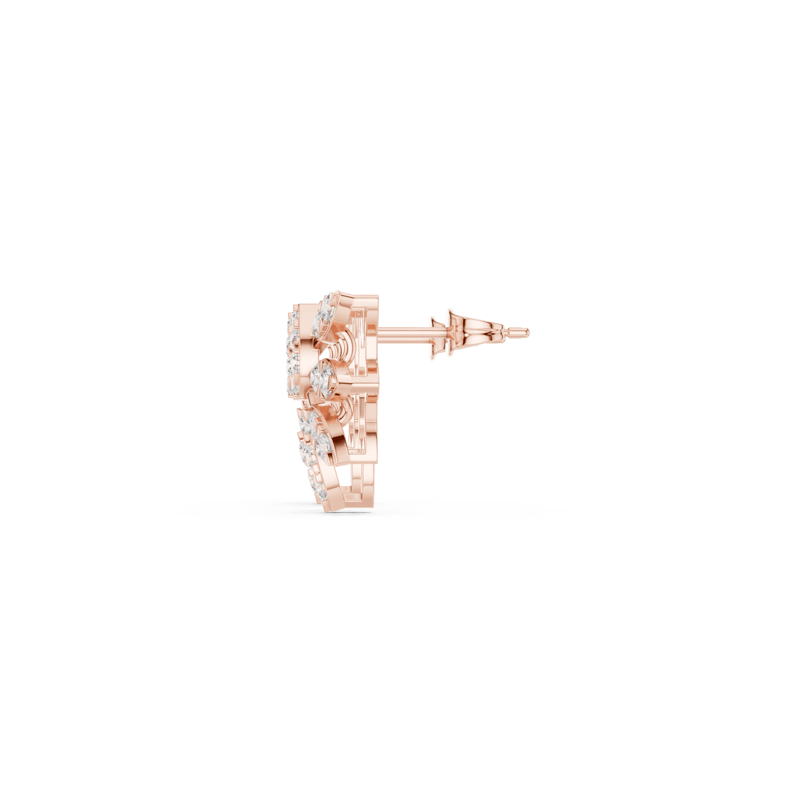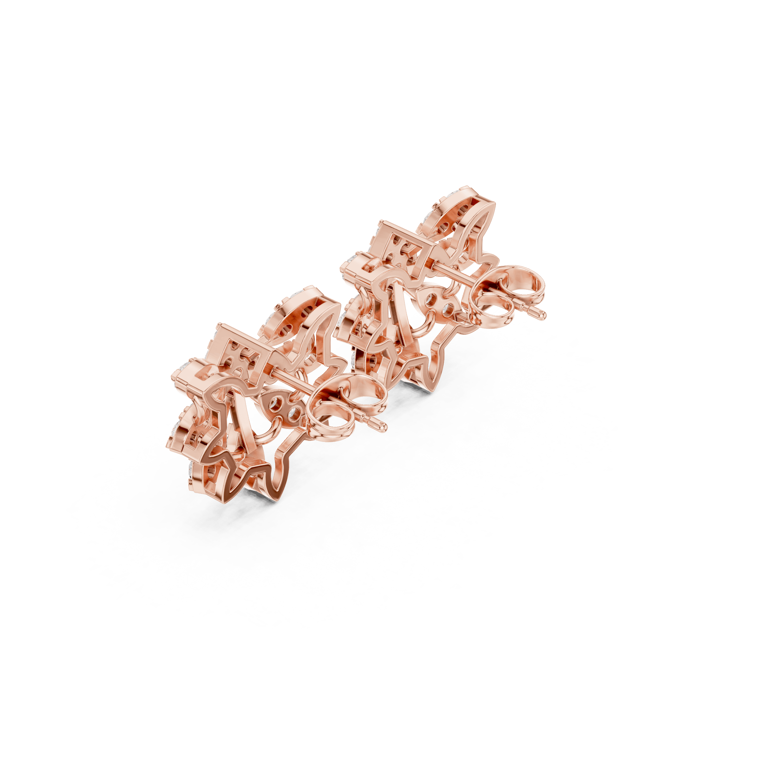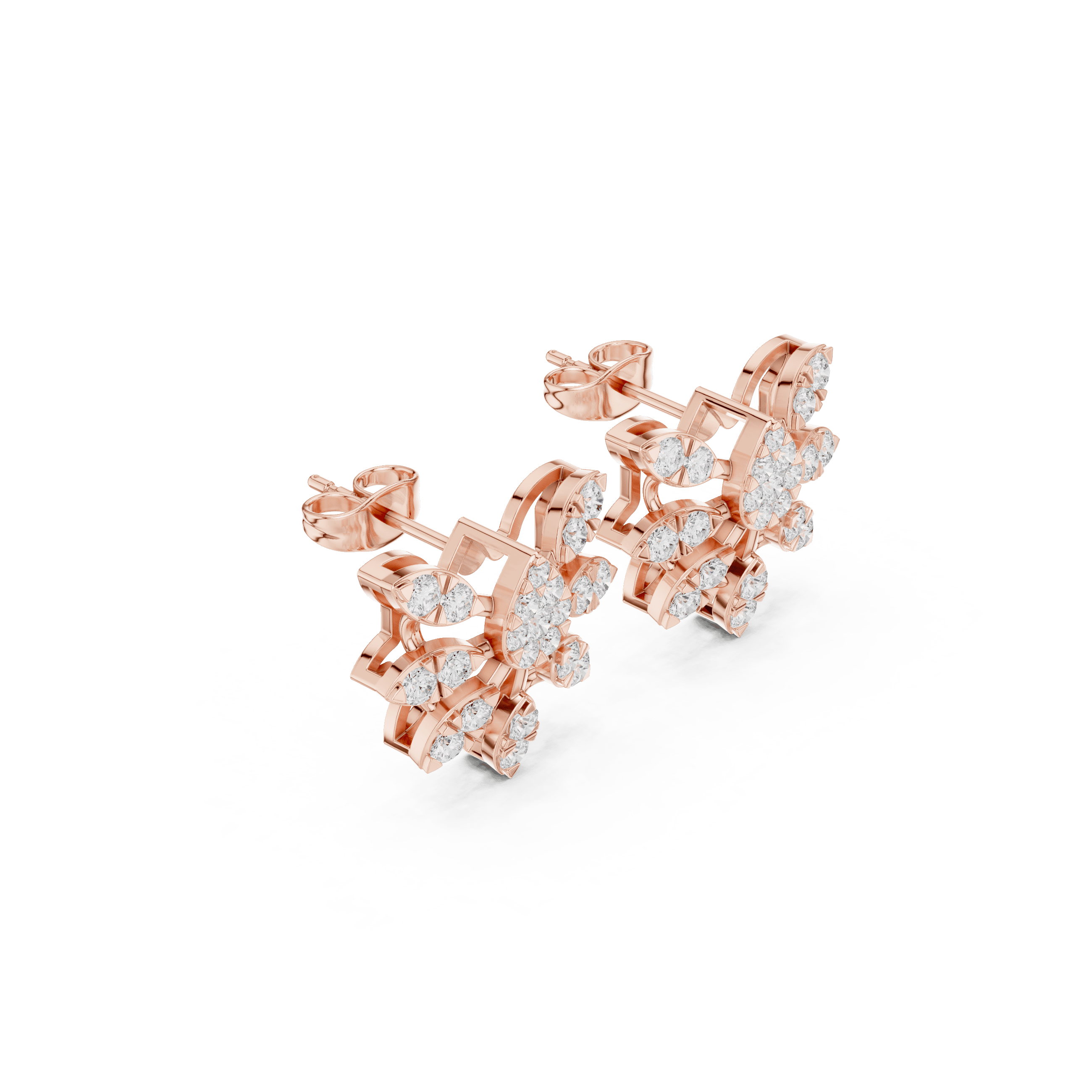 As per CAD measurements, the earrings have a dimension of 17.30 mm length, 15.38 mm width, and 5.82 mm depth, giving them a bold yet wearable presence.