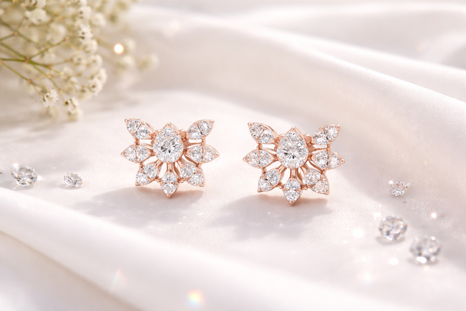 Introducing the Aurora Petal Diamond Stud Earrings, a premium floral-inspired cluster design crafted for those who love subtle luxury with high brilliance. Designed in an elegant petal arrangement, these earrings deliver a rich sparkle while maintaining a refined and modern silhouette—perfect for both Gen-Z styling and Gen-X timeless elegance.