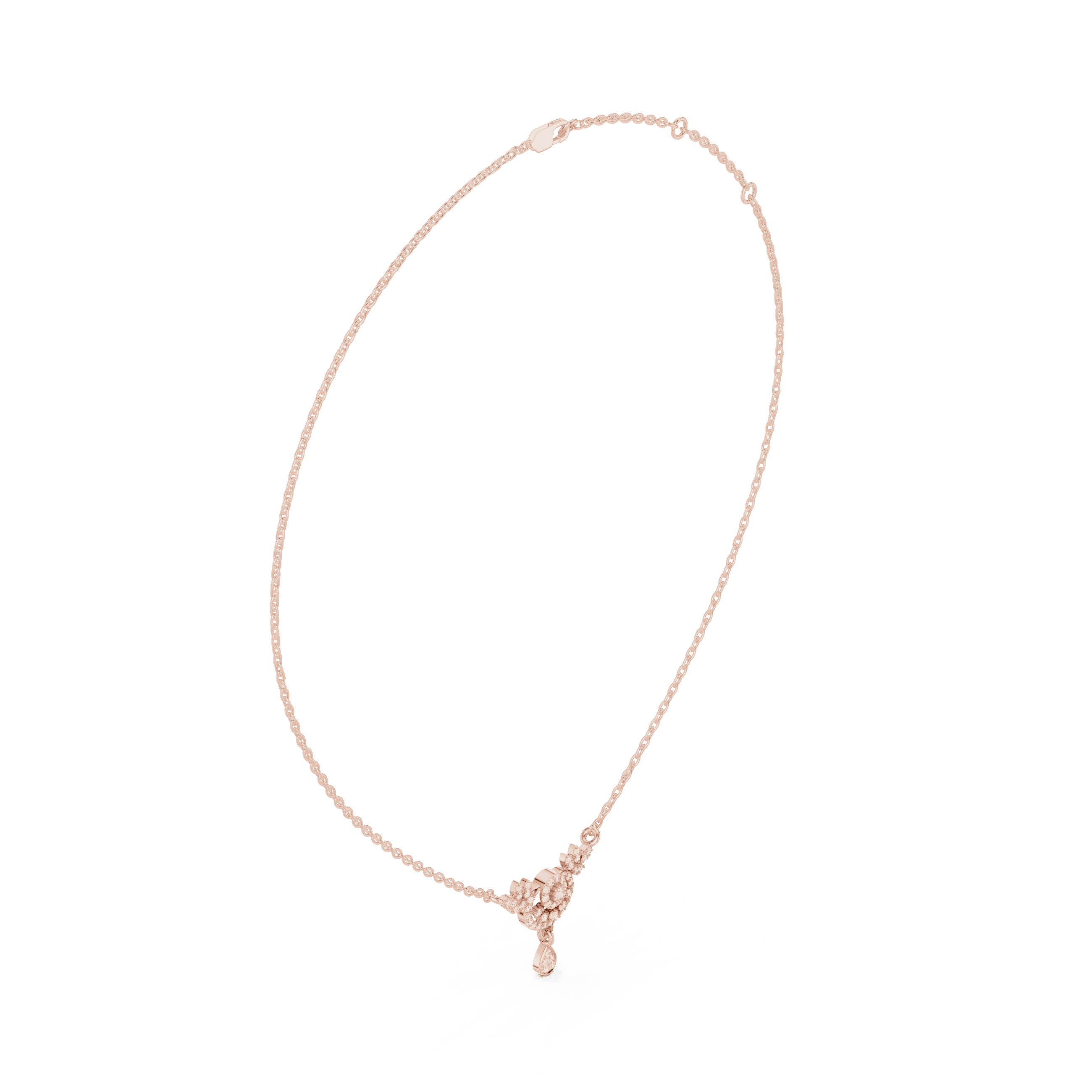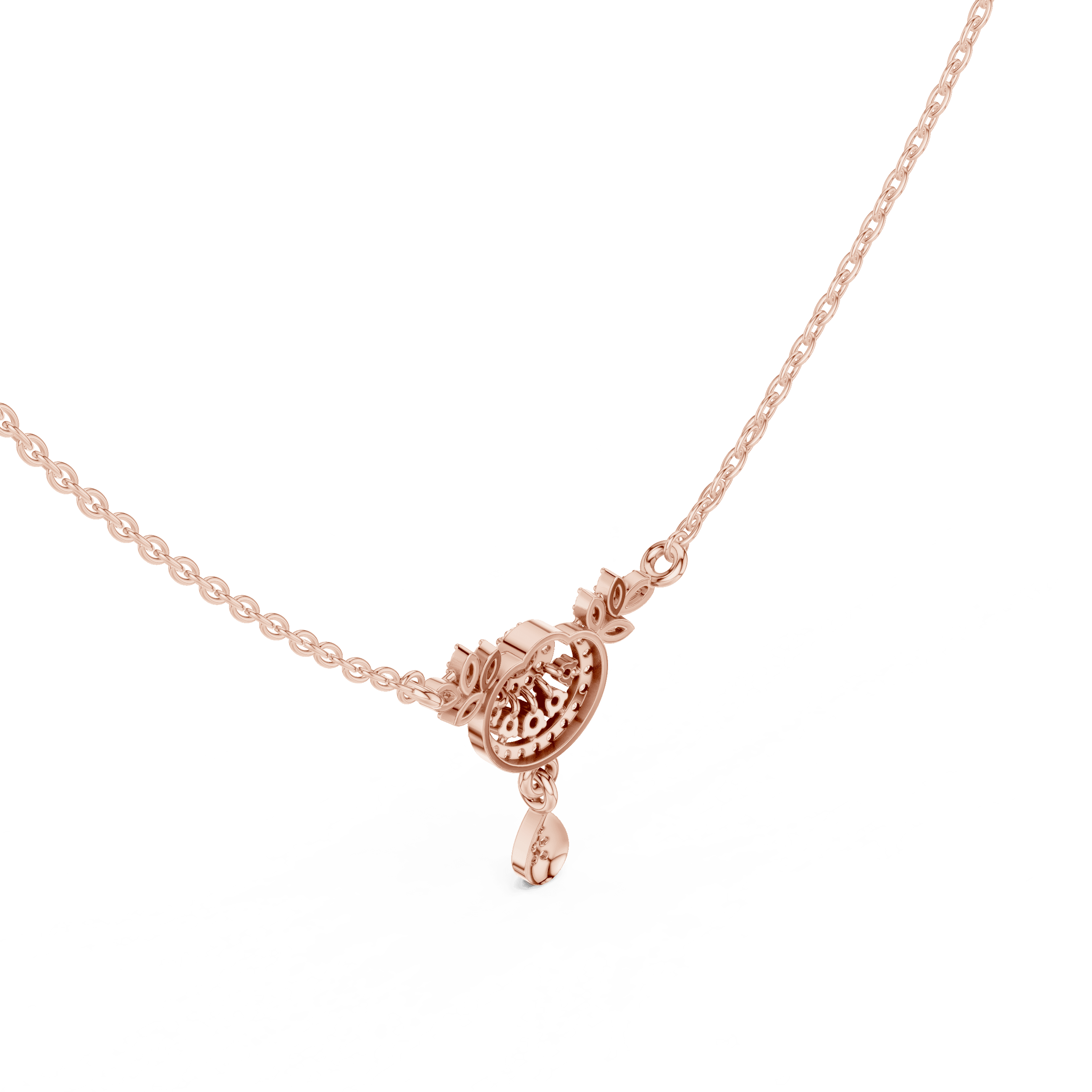 The design is set entirely with Laboratory Grown Diamonds, selected for their clarity, brilliance, and ethical origin. As per the CAD specifications, the pendant features a total of 52 round Laboratory Grown Diamonds with a combined diamond weight of 0.29 carats. This includes one 1.70 mm Laboratory Grown Diamond weighing 0.020 carats set in a collet setting, forty-six 1.00 mm Laboratory Grown Diamonds totaling 0.230 carats secured in prong settings, one 1.40 mm Laboratory Grown Diamond weighing 0.012 carats set in a collet setting, two 1.10 mm Laboratory Grown Diamonds totaling 0.012 carats in collet settings, and two 1.20 mm Laboratory Grown Diamonds weighing a total of 0.016 carats, also set in collet settings. The careful distribution of these Laboratory Grown Diamonds creates depth, softness, and movement, allowing the pendant to catch light from every angle without appearing overstated.