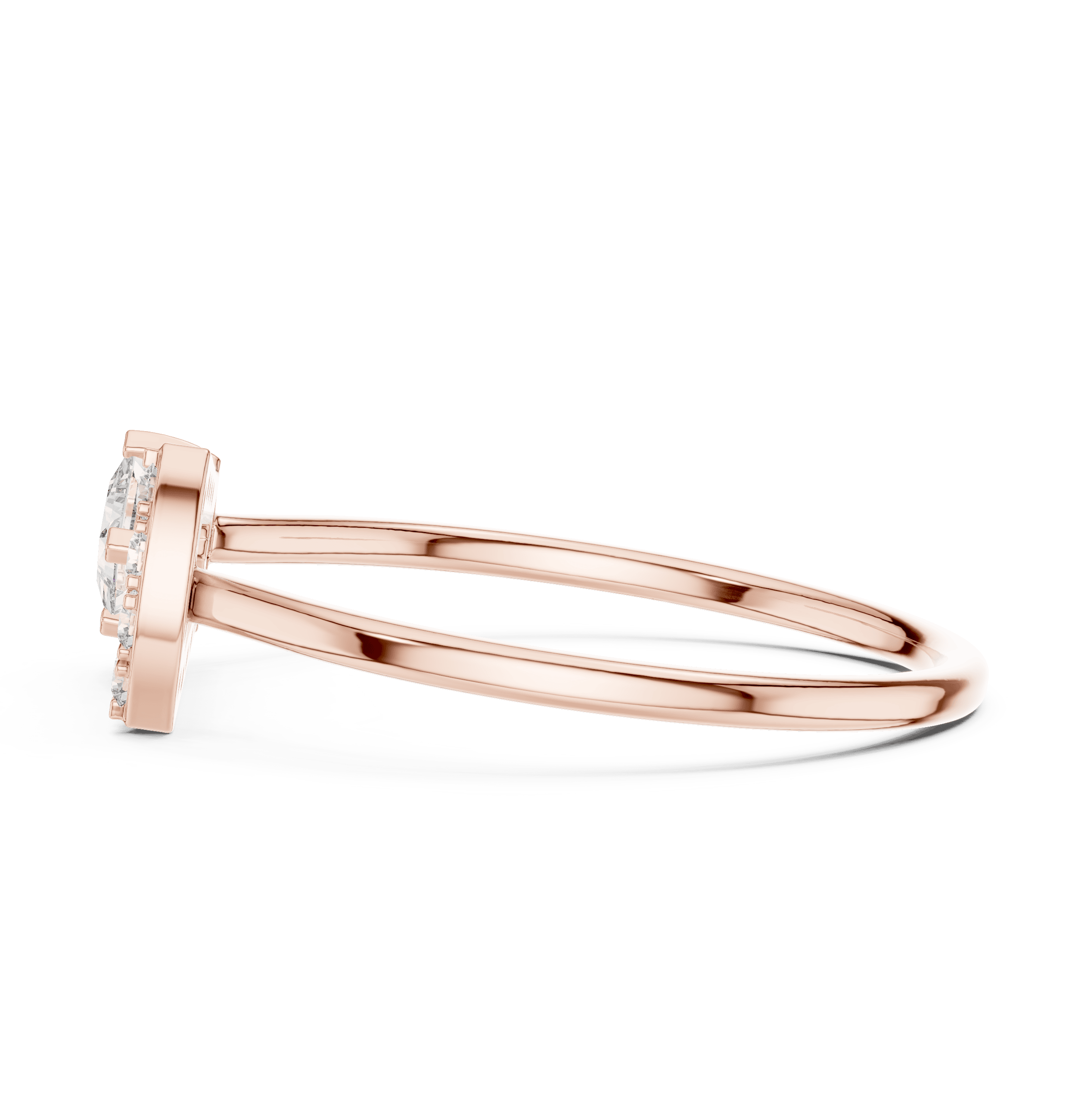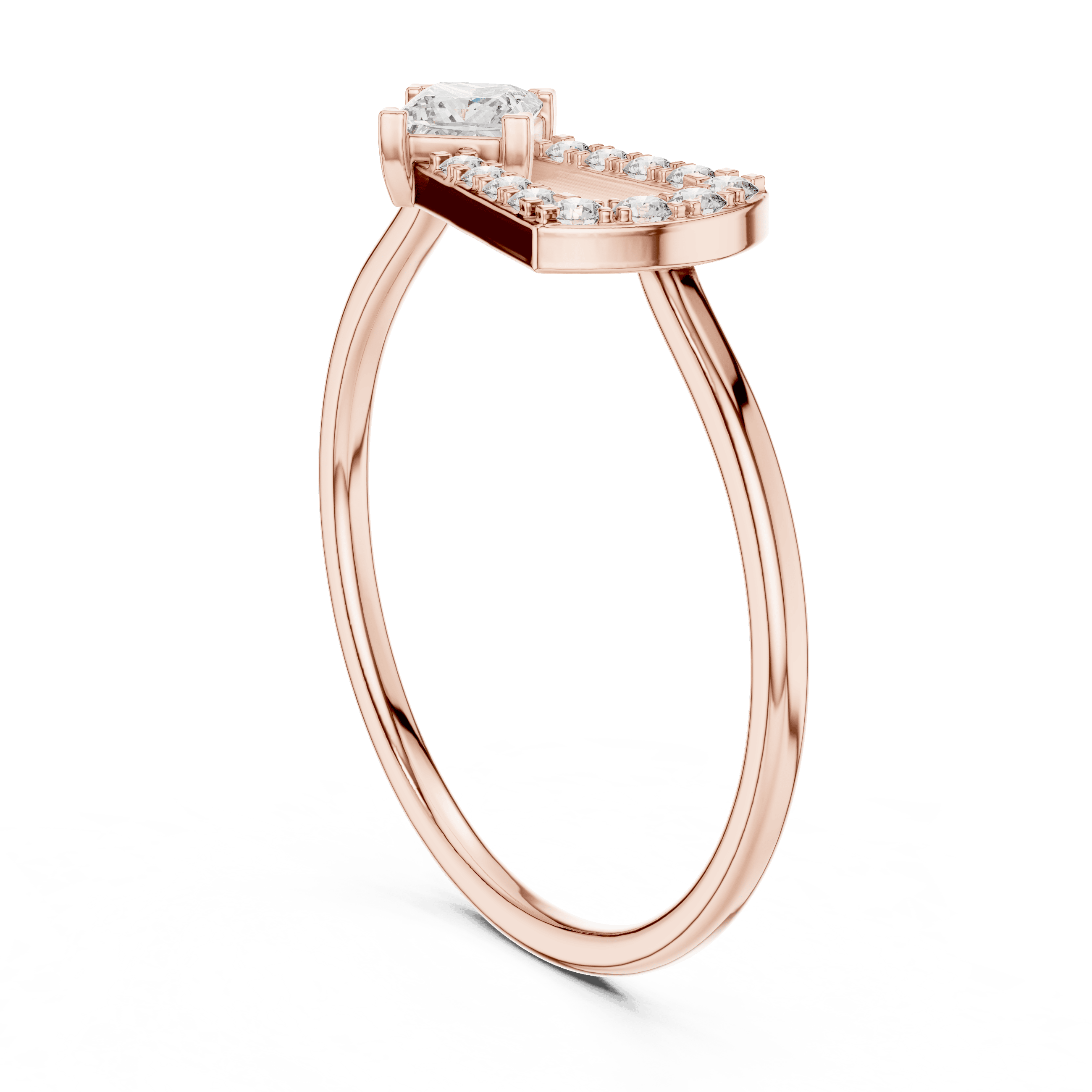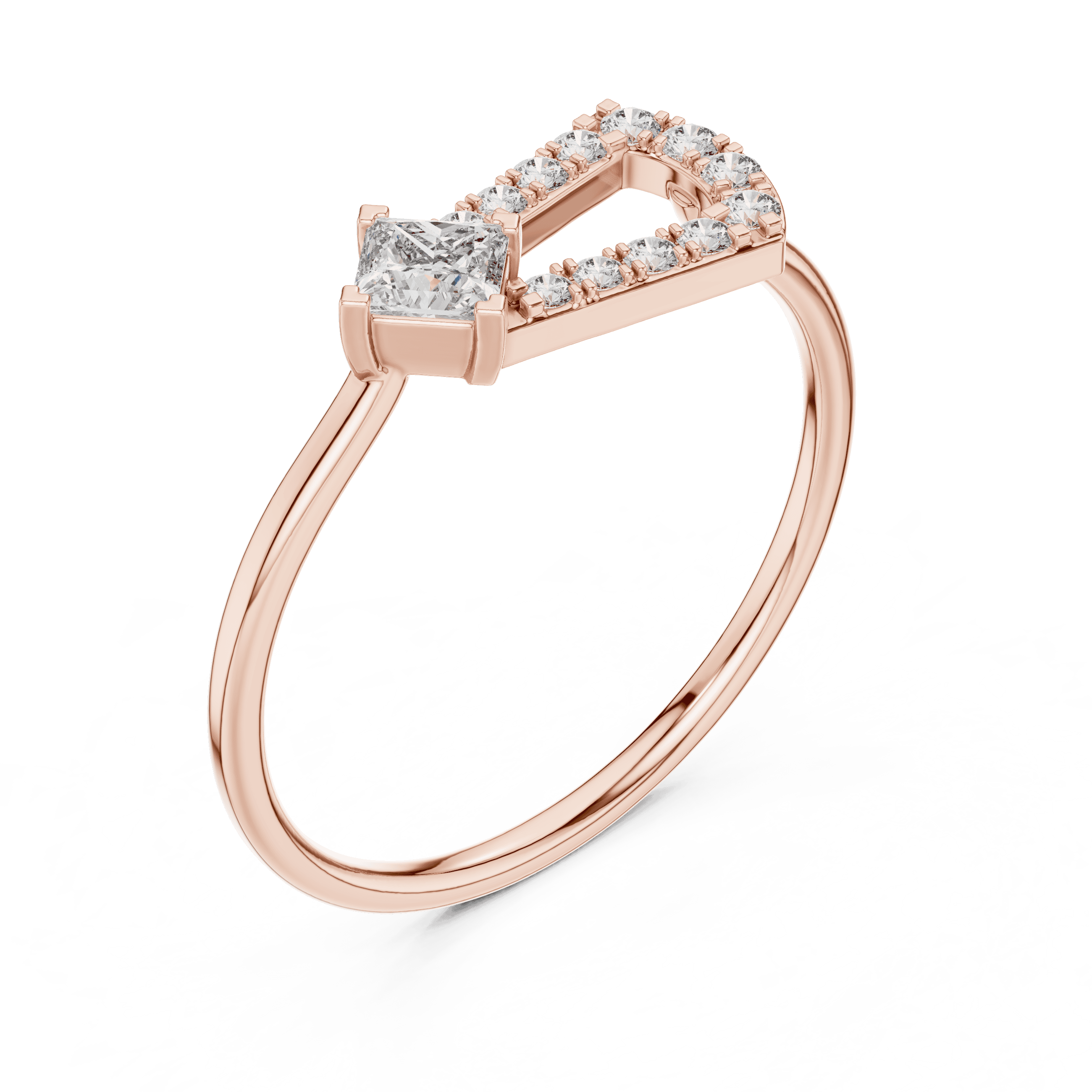 At its center sits a princess-cut Laboratory-grown Diamond measuring 3.00 × 3.00 mm and weighing 0.17 carat, carefully secured in a collet setting that highlights its sharp geometry and contemporary appeal. The centerpiece is subtly enhanced by twelve round Laboratory-grown Diamonds, micro-set around the frame and along the design to create a soft, measured brilliance. These include four round pieces of 1.30 mm (0.04 carat total), four round pieces of 1.20 mm (0.032 carat total), and four round pieces of 1.10 mm (0.024 carat total)—bringing the total  count to 13 and the total weight to 0.266 carat.
