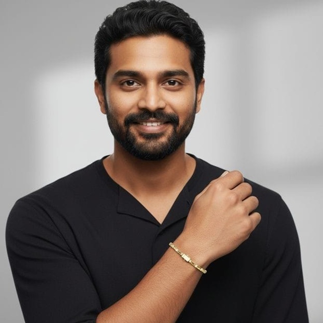 Virex Regalis is conceived as a modern heirloom for the man who understands that true luxury speaks in restraint. The bracelet unfolds in a precise, architectural rhythm—each polished gold link shaped with deliberate geometry, forming a continuous line of control and balance around the wrist. Its silhouette is clean yet commanding, designed to feel substantial without excess, refined without fragility.