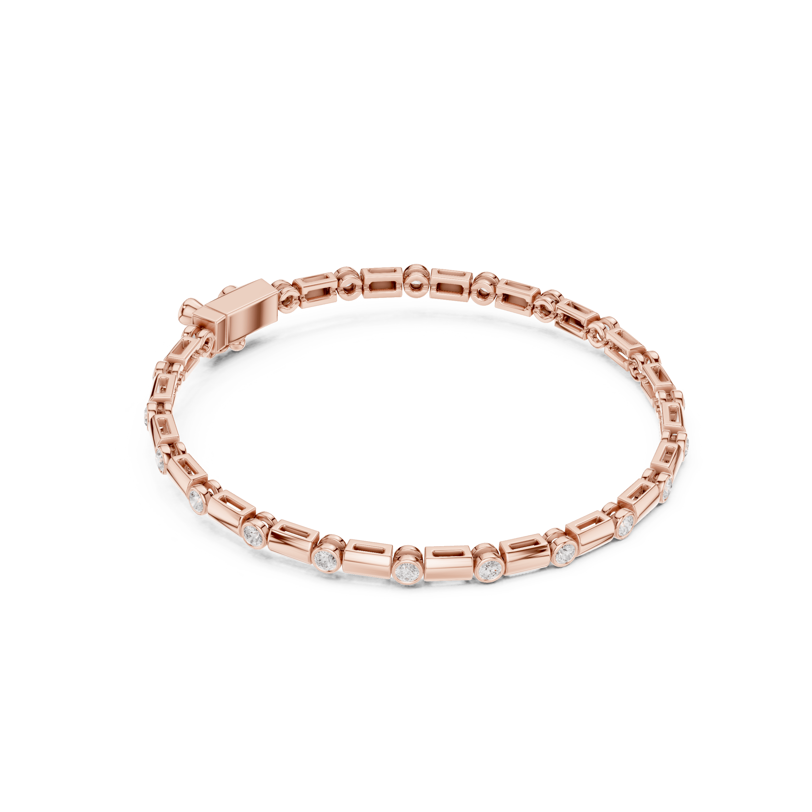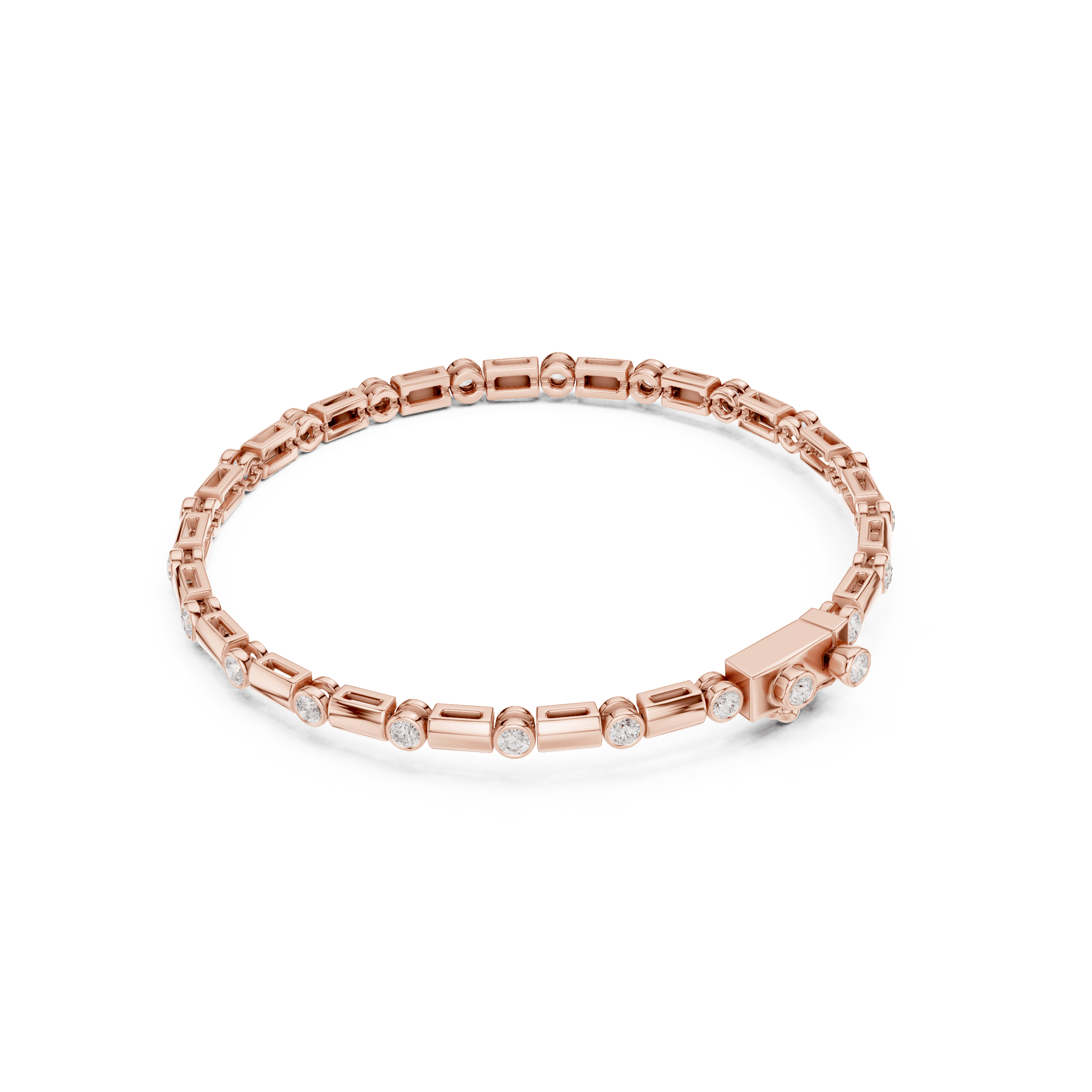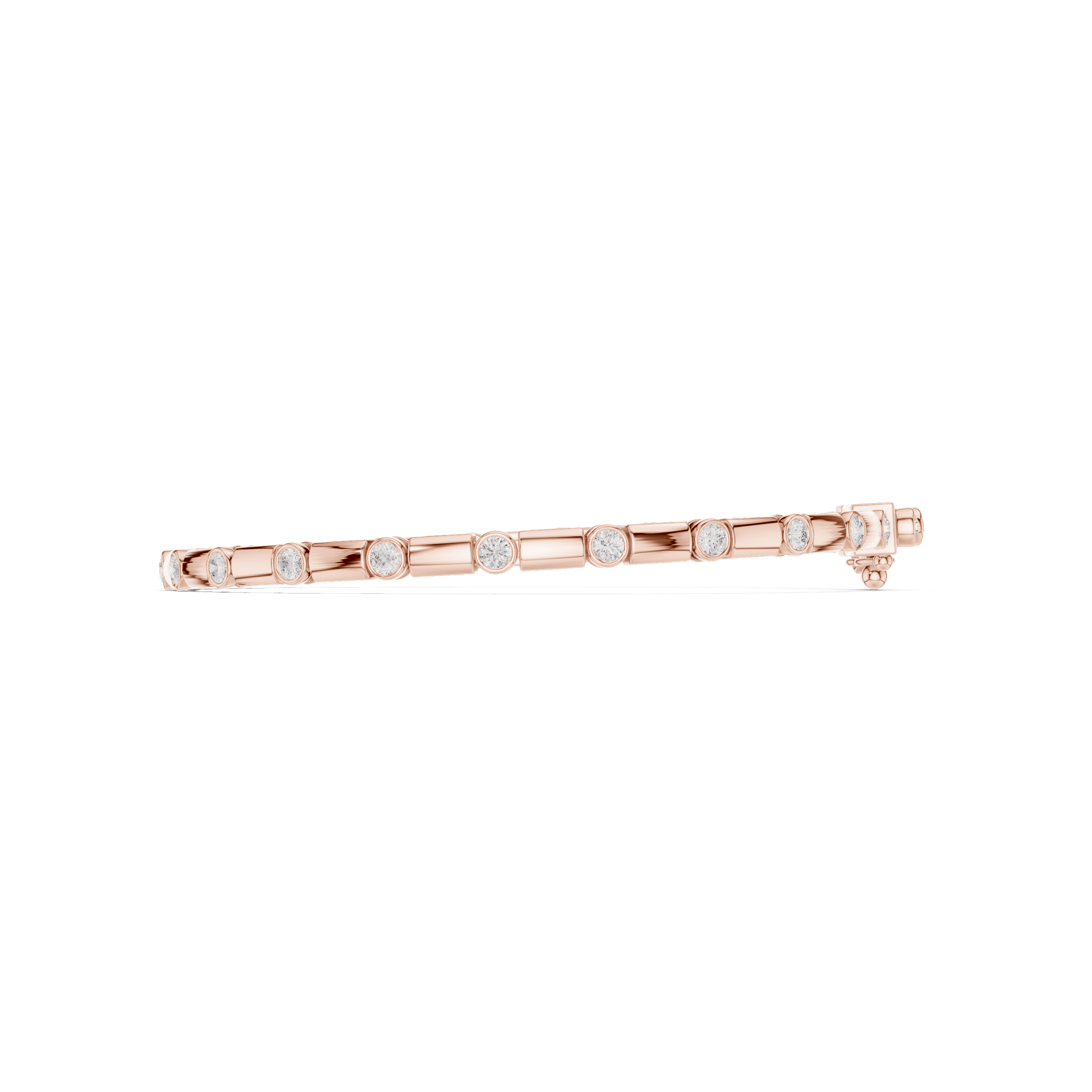 As interpreted directly from the CAD, the design is anchored by 23 round laboratory grown diamonds, each precisely cut at 2.00 mm and bezel-set into the structure to create a seamless flow of light rather than overt sparkle. Together, these diamonds carry a total weight of approximately 0.805 carats, offering a measured brilliance that reveals itself only upon closer inspection—an expression of confidence rather than display. The bezel setting enhances durability while reinforcing the bracelet’s sculptural, contemporary character.