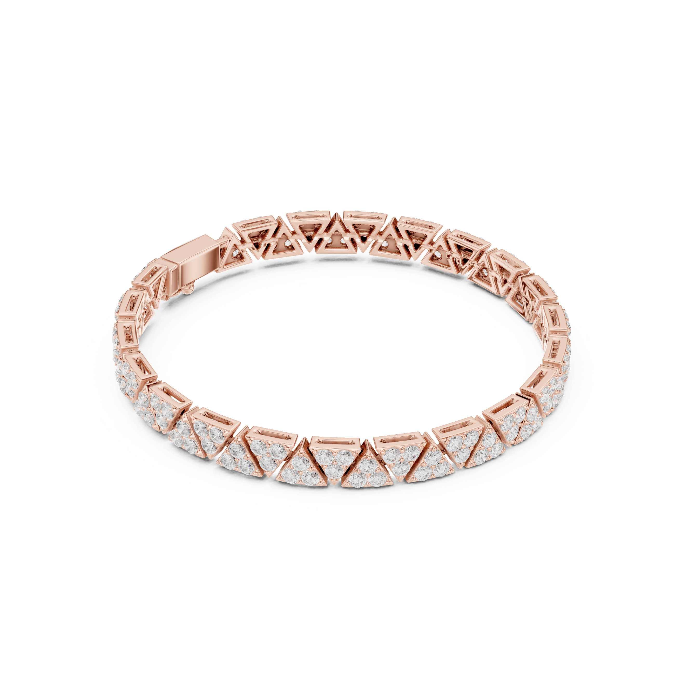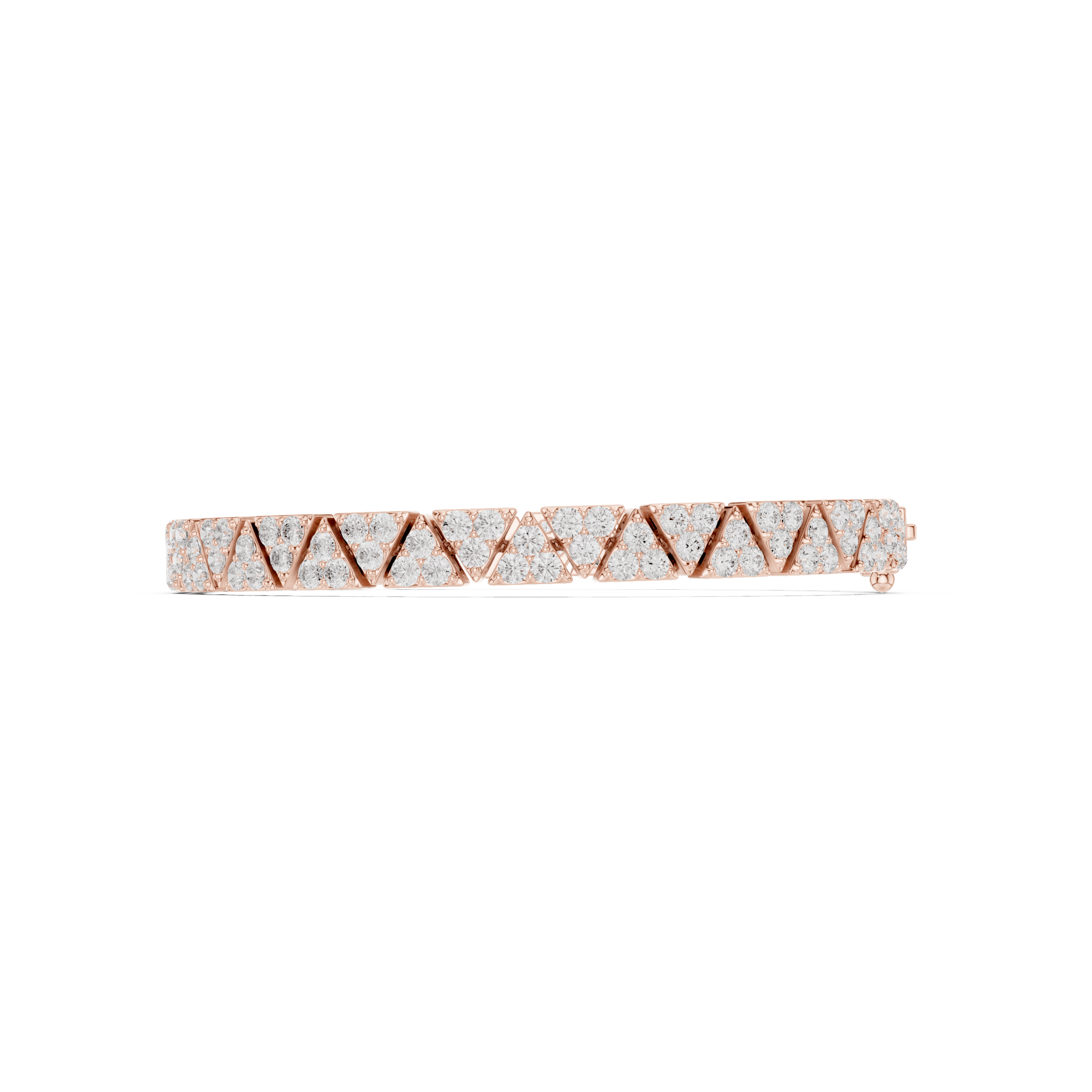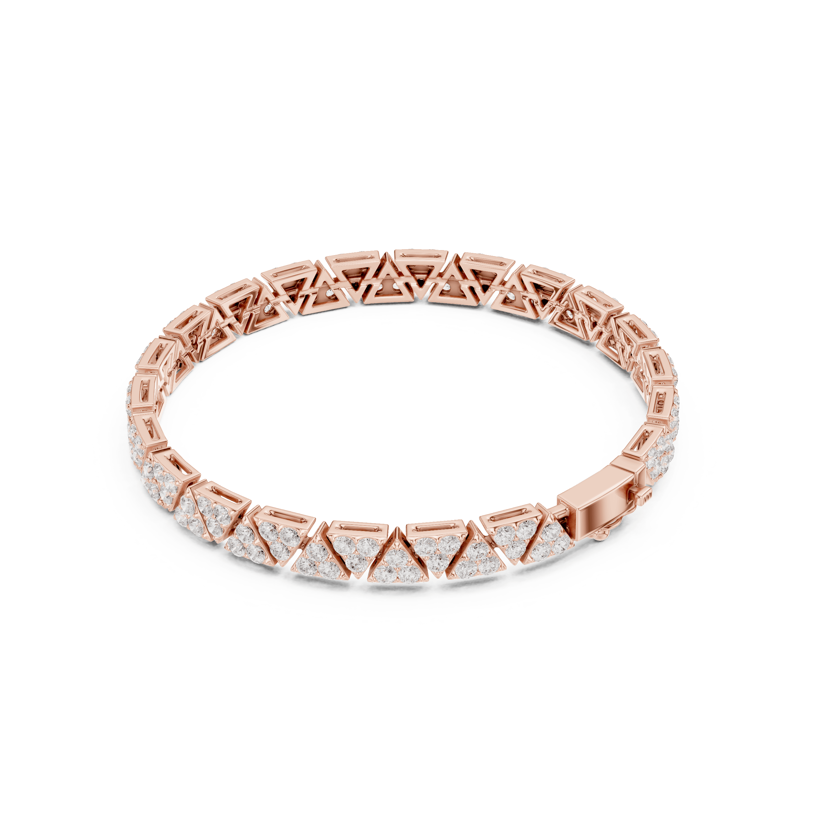 The bracelet’s geometry is intentional: repeating triangular and linear motifs echo ancient heraldic forms, reinterpreted through modern precision. Every clasp, every junction, is integrated invisibly, preserving the uninterrupted silhouette — a hallmark of true high jewellery craftsmanship.