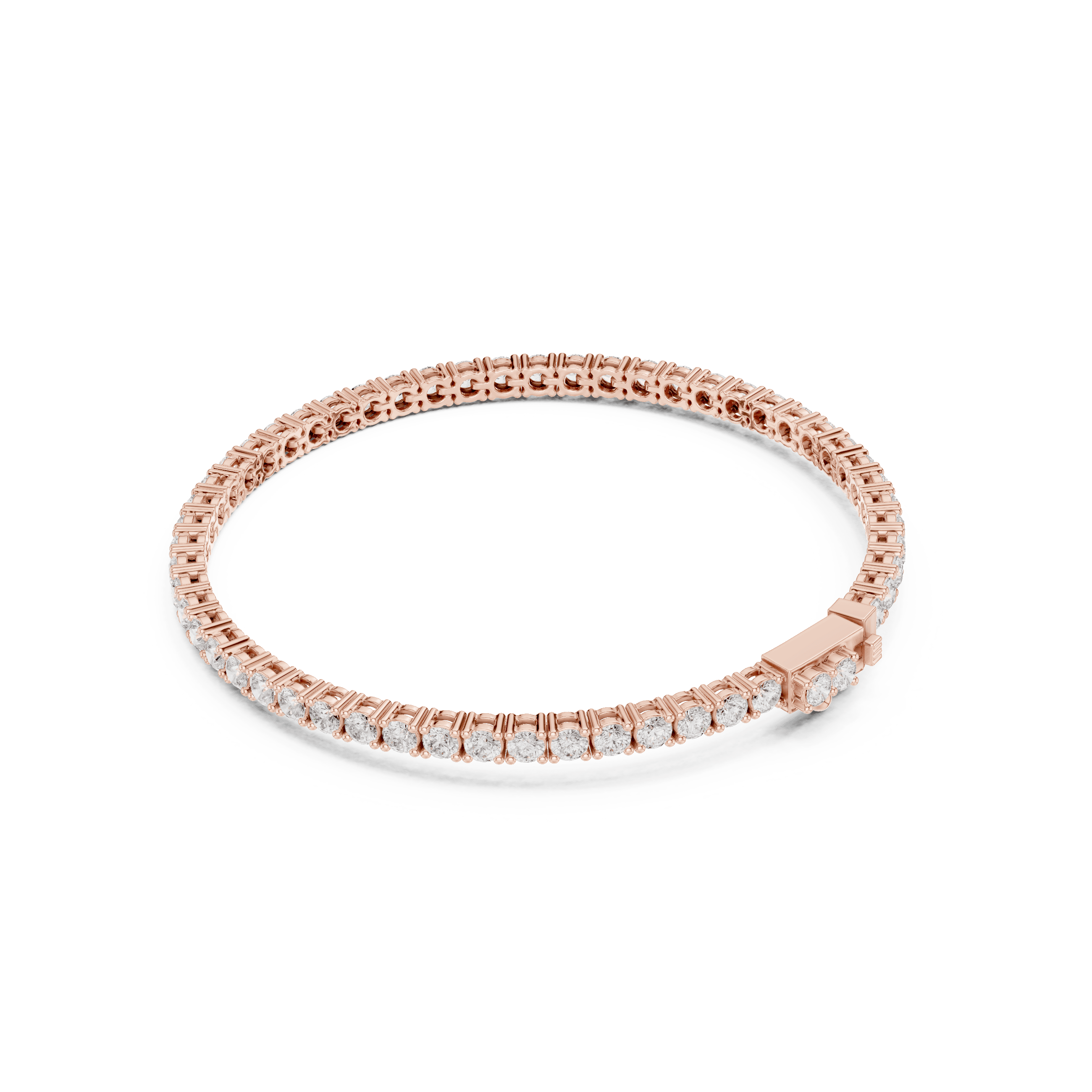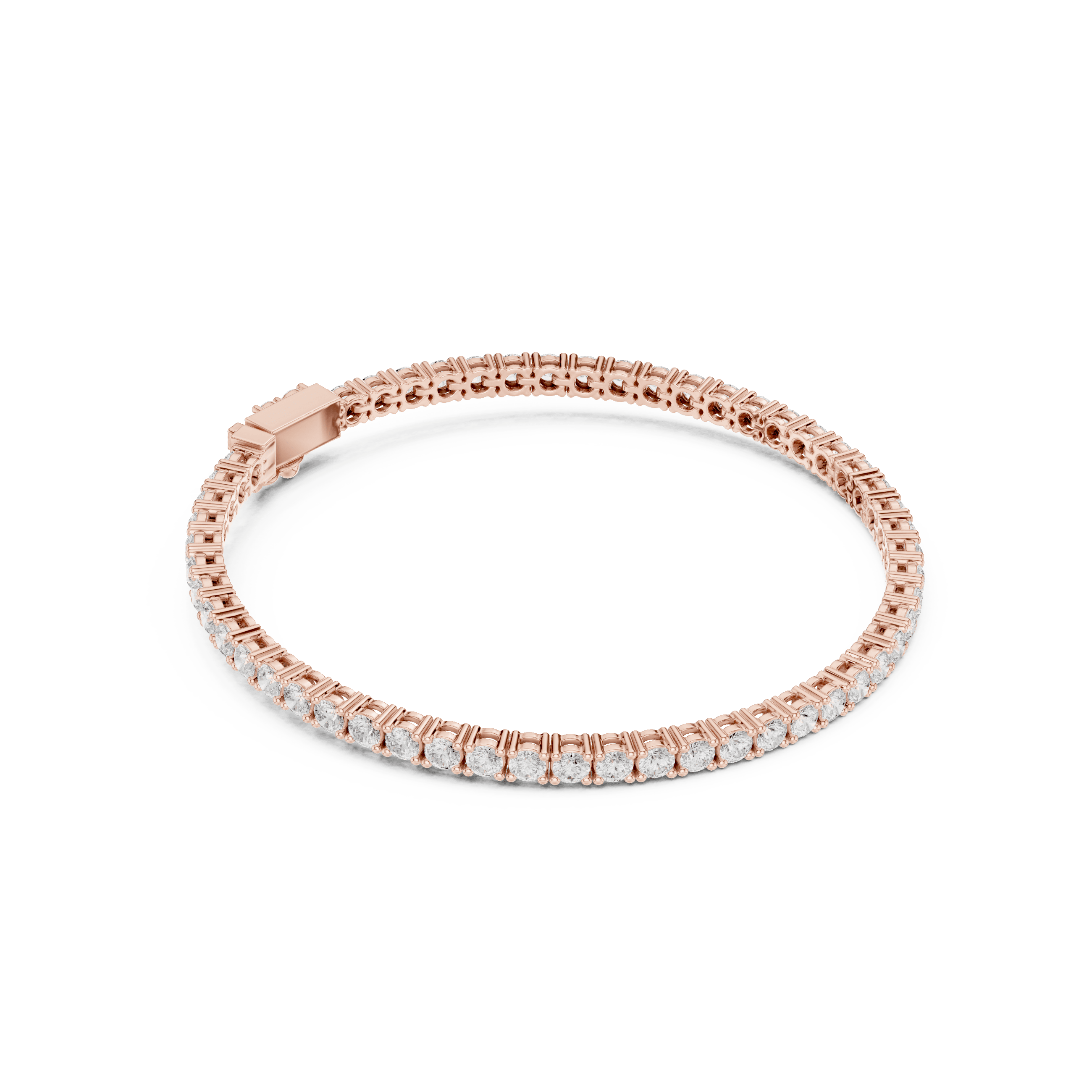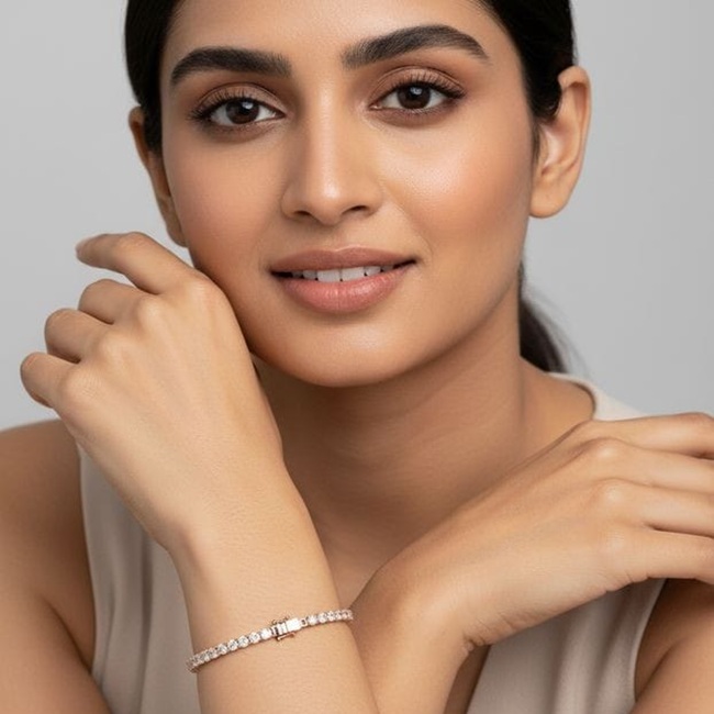 As per the CAD design, this bracelet is set with 54 round brilliant laboratory-grown diamonds, each measuring 2.50 × 2.50 mm, collectively weighing approximately 3.05 carats. The uniformity of the stones creates a continuous sparkle, while the secure setting ensures both durability and a refined profile suitable for everyday luxury as well as elevated evenings.