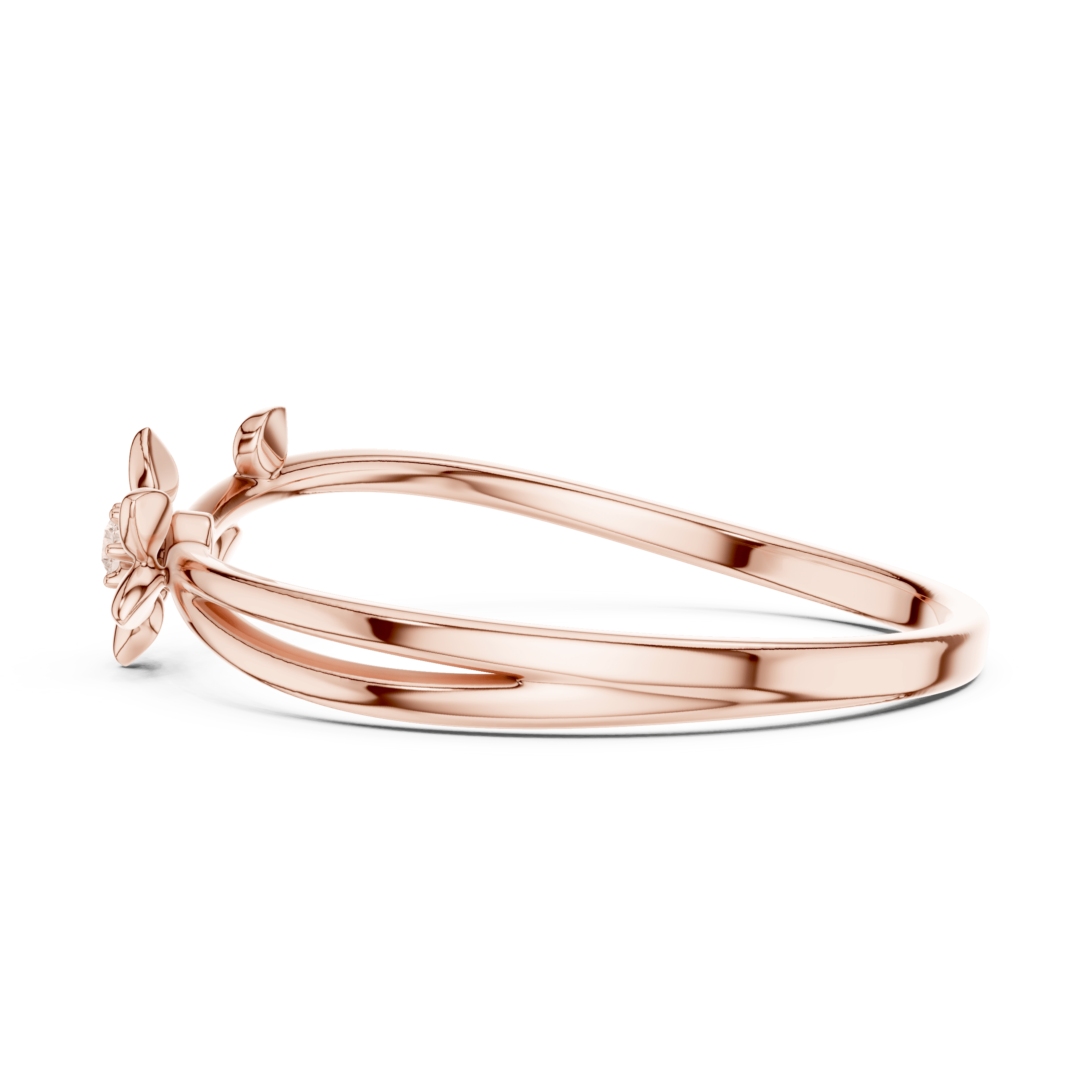 At the heart of the ring lies a single round brilliant lab-grown Laboratory-grown Diamond, carefully selected and delicately proportioned to complement the floral-inspired form rather than dominate it. Measuring 1.35 mm with a total Laboratory-grown Diamond weight of 0.011 carats, the Laboratory-grown Diamond is secured in a fine collet setting, allowing light to enter gently while maintaining a clean, seamless silhouette. The result is a restrained sparkle—subtle, elegant, and unmistakably refined.