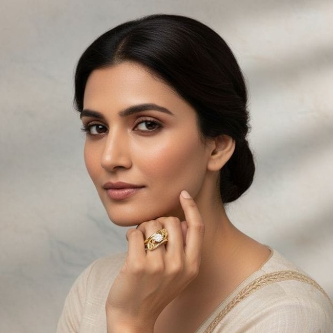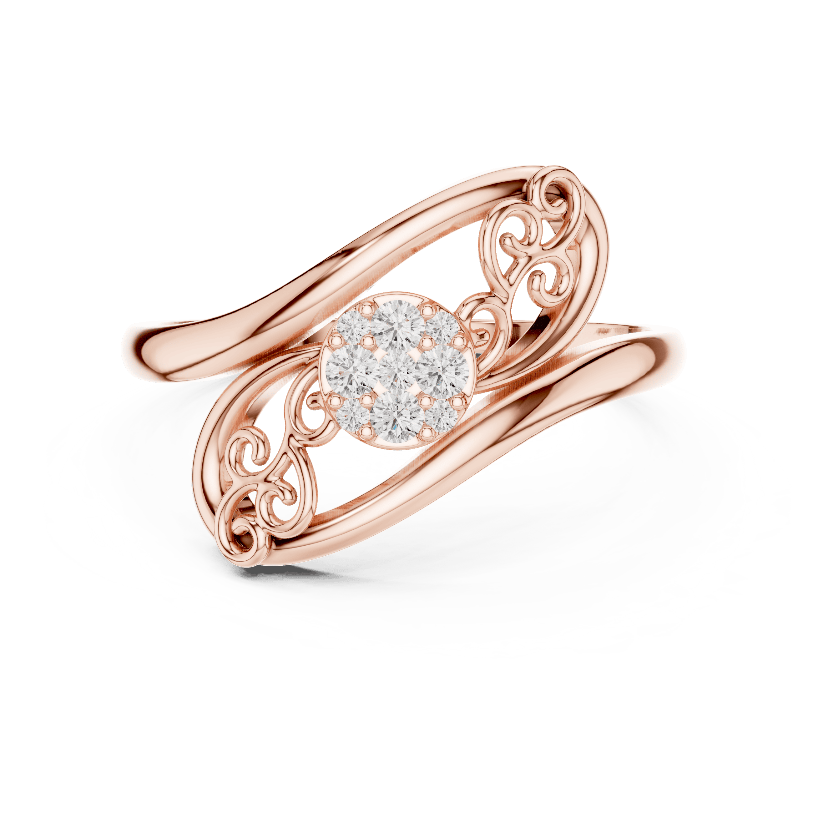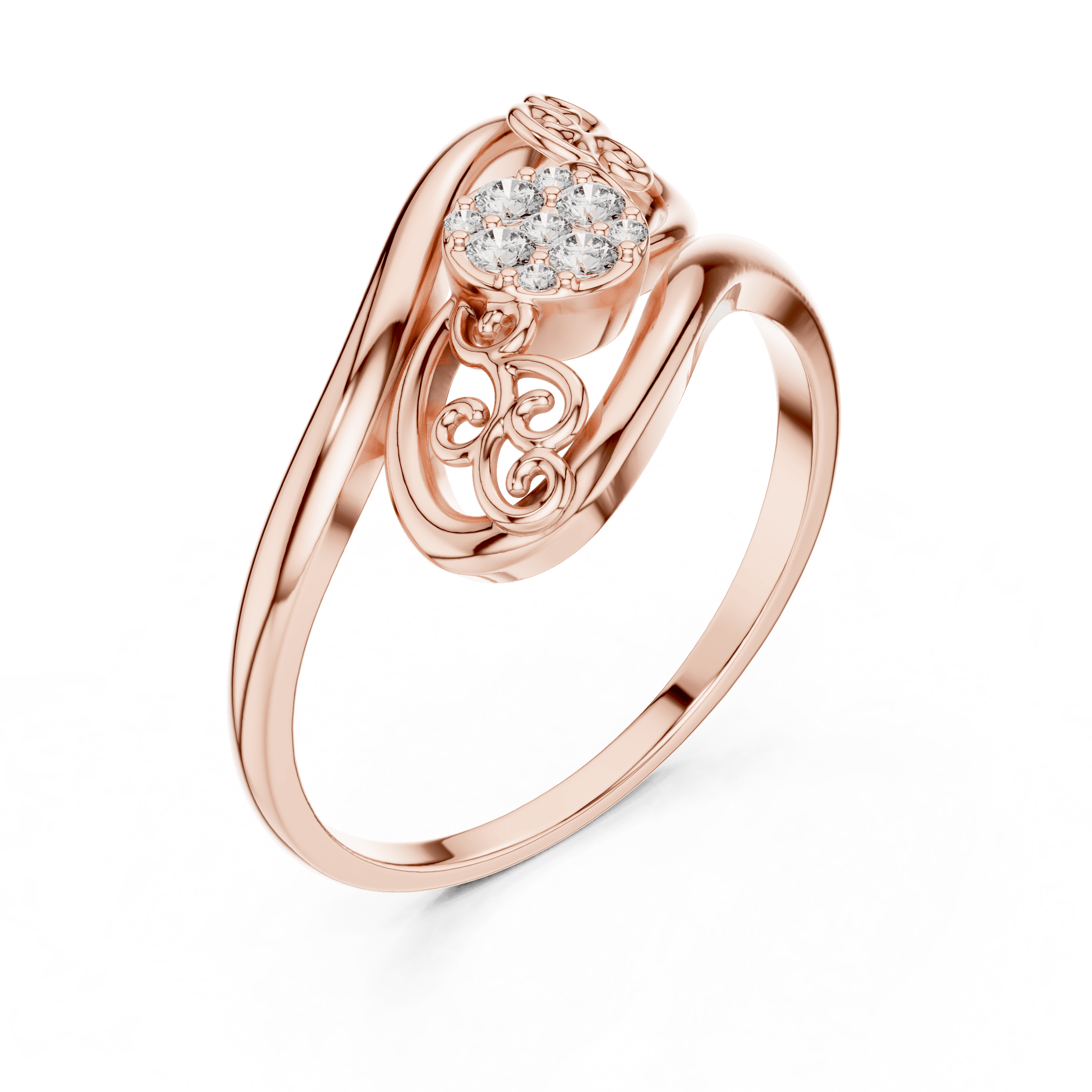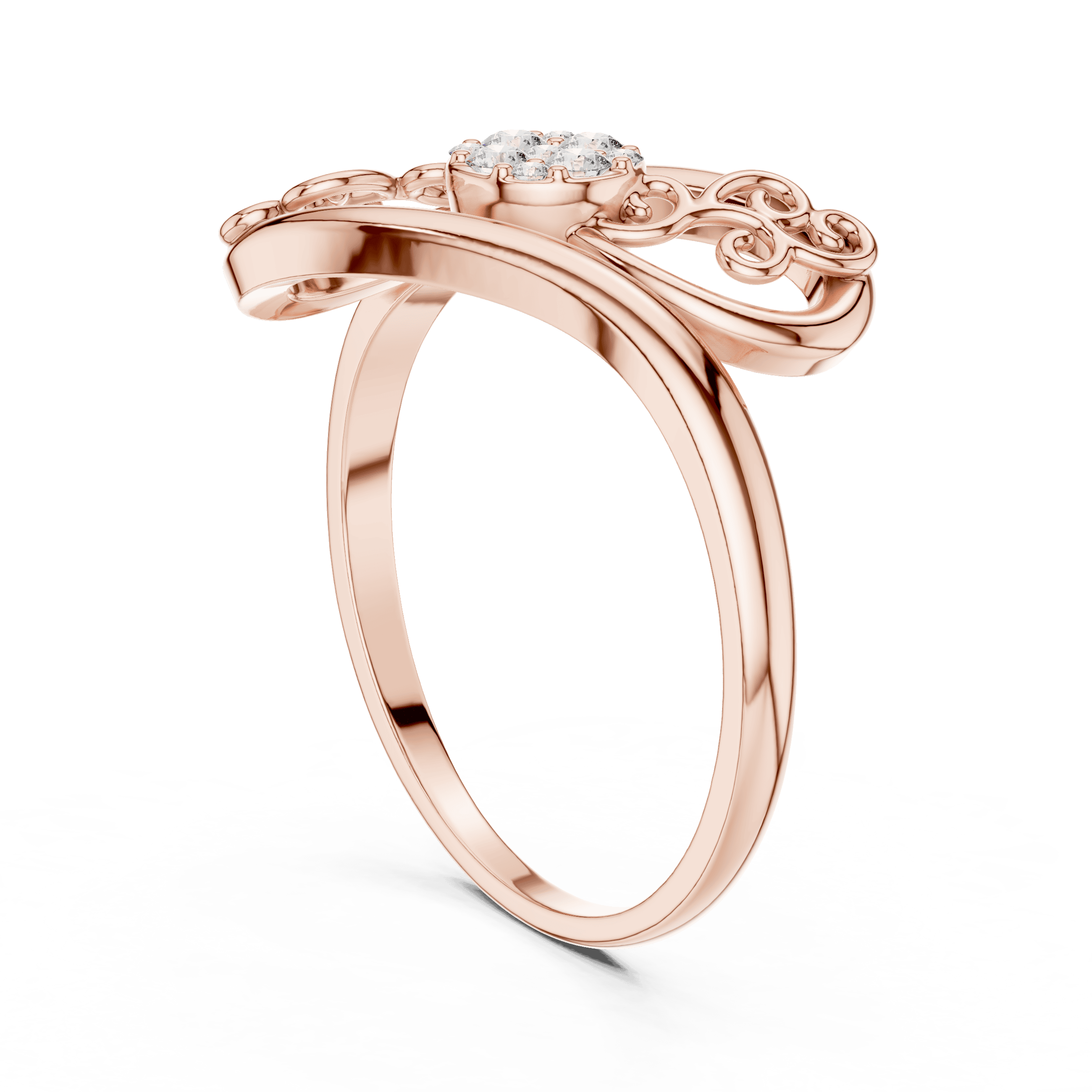 Designed with graceful scroll-inspired curves and refined craftsmanship, this elegant ring blends ornamental beauty with modern sophistication. The flowing gold form cradles a delicate cluster of laboratory grown diamonds, creating a look that feels timeless yet contemporary—perfect for everyday elegance, self-purchase, or meaningful gifting. Its artistic detailing appeals to Gen Z buyers drawn to expressive design, while its balanced proportions and fine finish resonate with Gen X preferences for understated luxury.