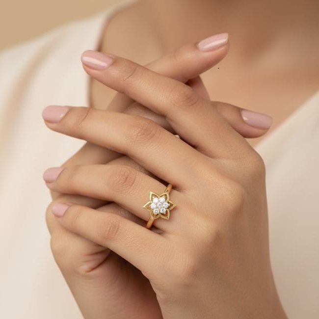 Elegant yet contemporary, the Astra Bloom Ring is inspired by celestial symmetry and soft floral geometry. The design features a sculpted star-like motif resting on a slim, polished band, creating a look that feels modern, graceful, and effortlessly luxurious. Perfect for everyday elegance or meaningful gifting, this ring speaks to both Gen Z minimalism and Gen X sophistication.