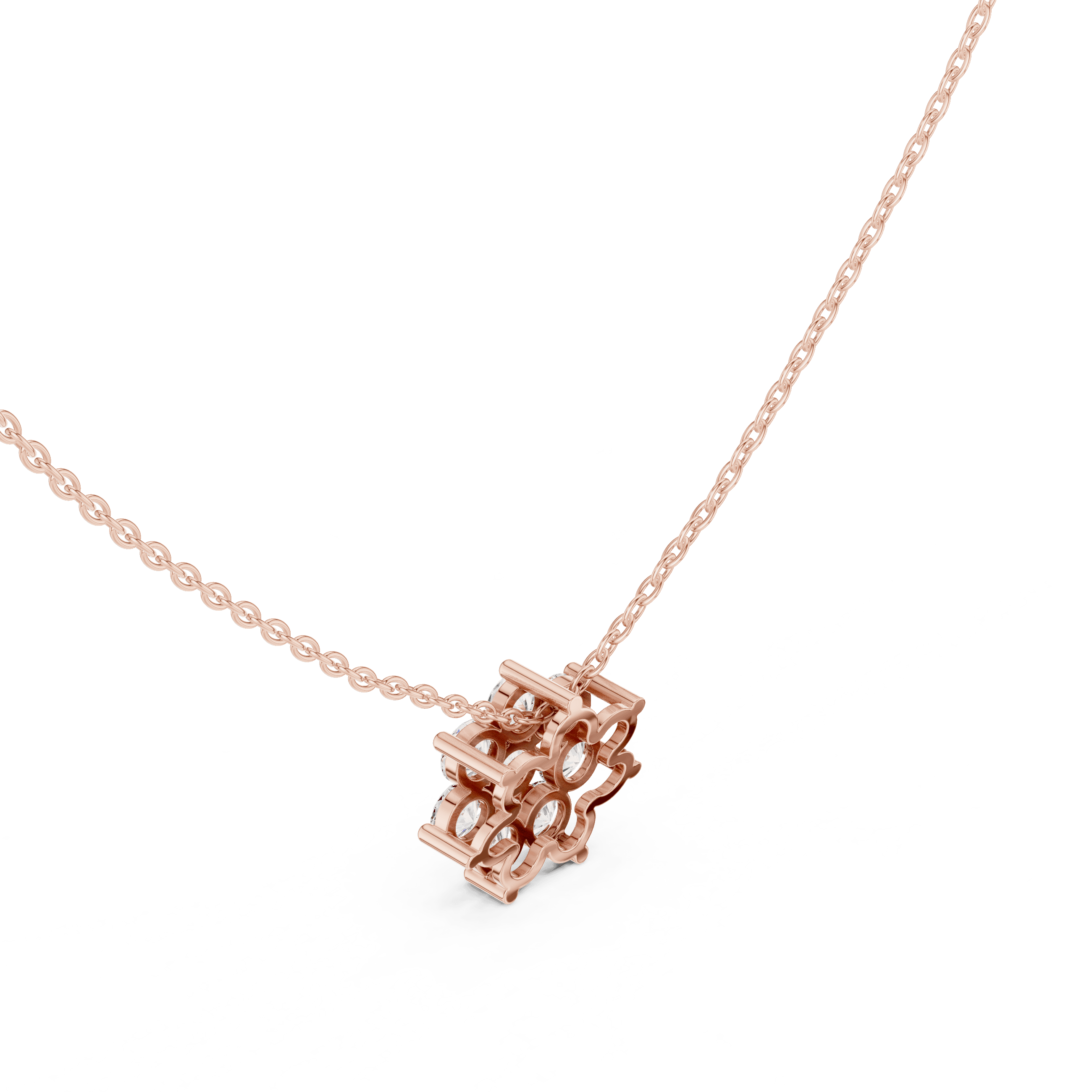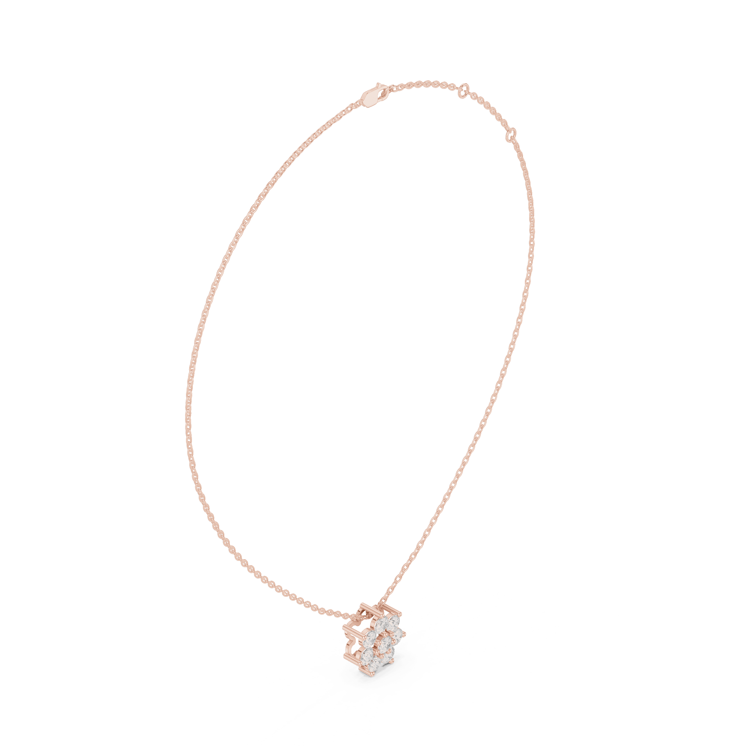 Set using a clean collet setting, the diamonds sit securely while allowing maximum light reflection — giving the pendant its signature soft glow. The cluster design enhances brilliance, making it appear larger and more luminous without being overpowering.