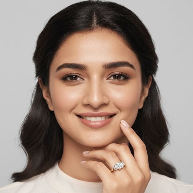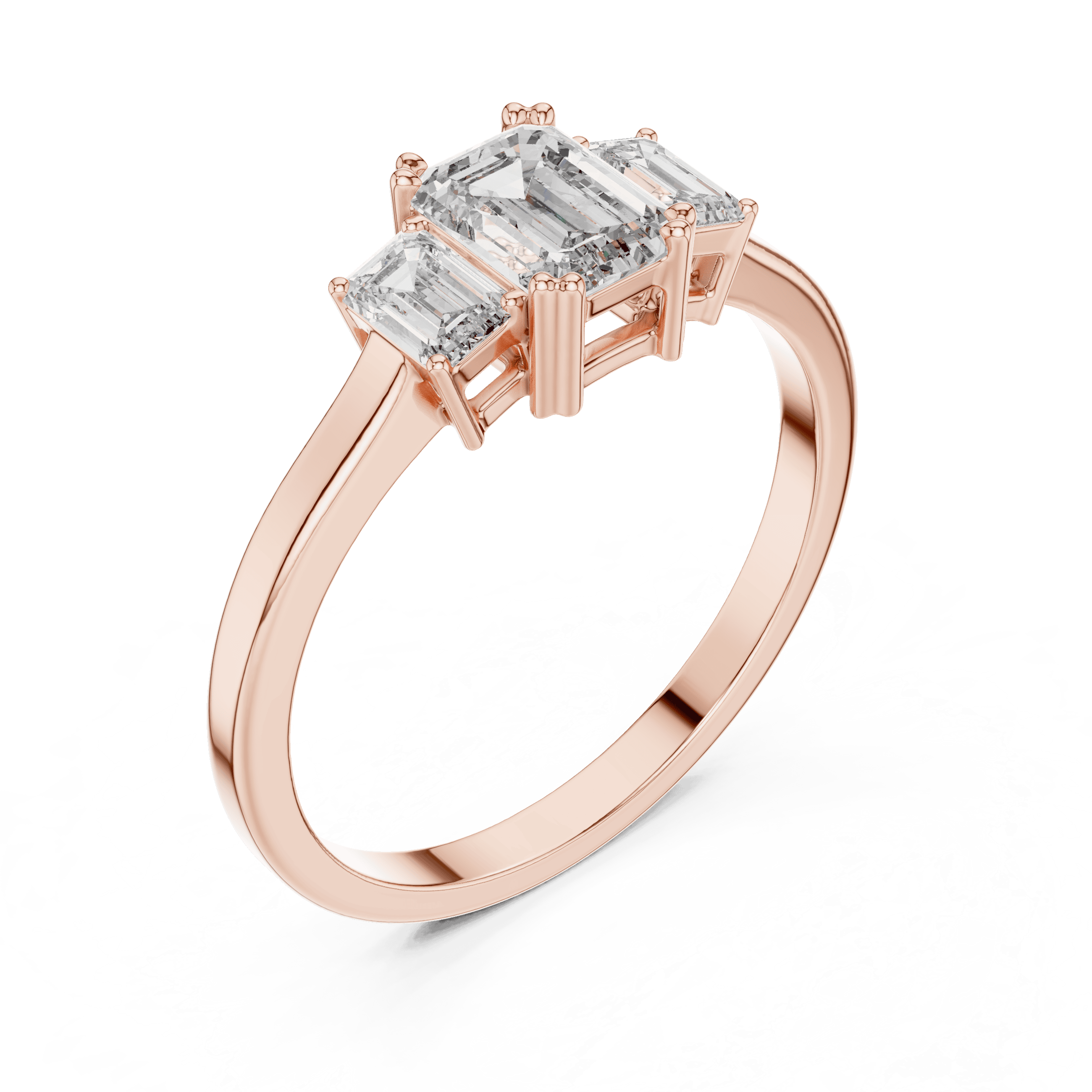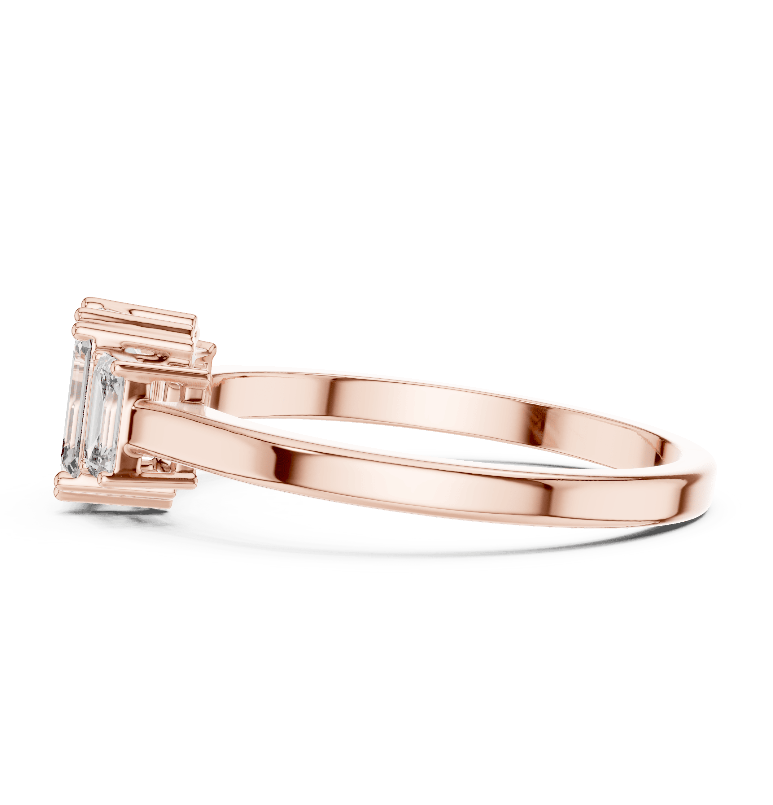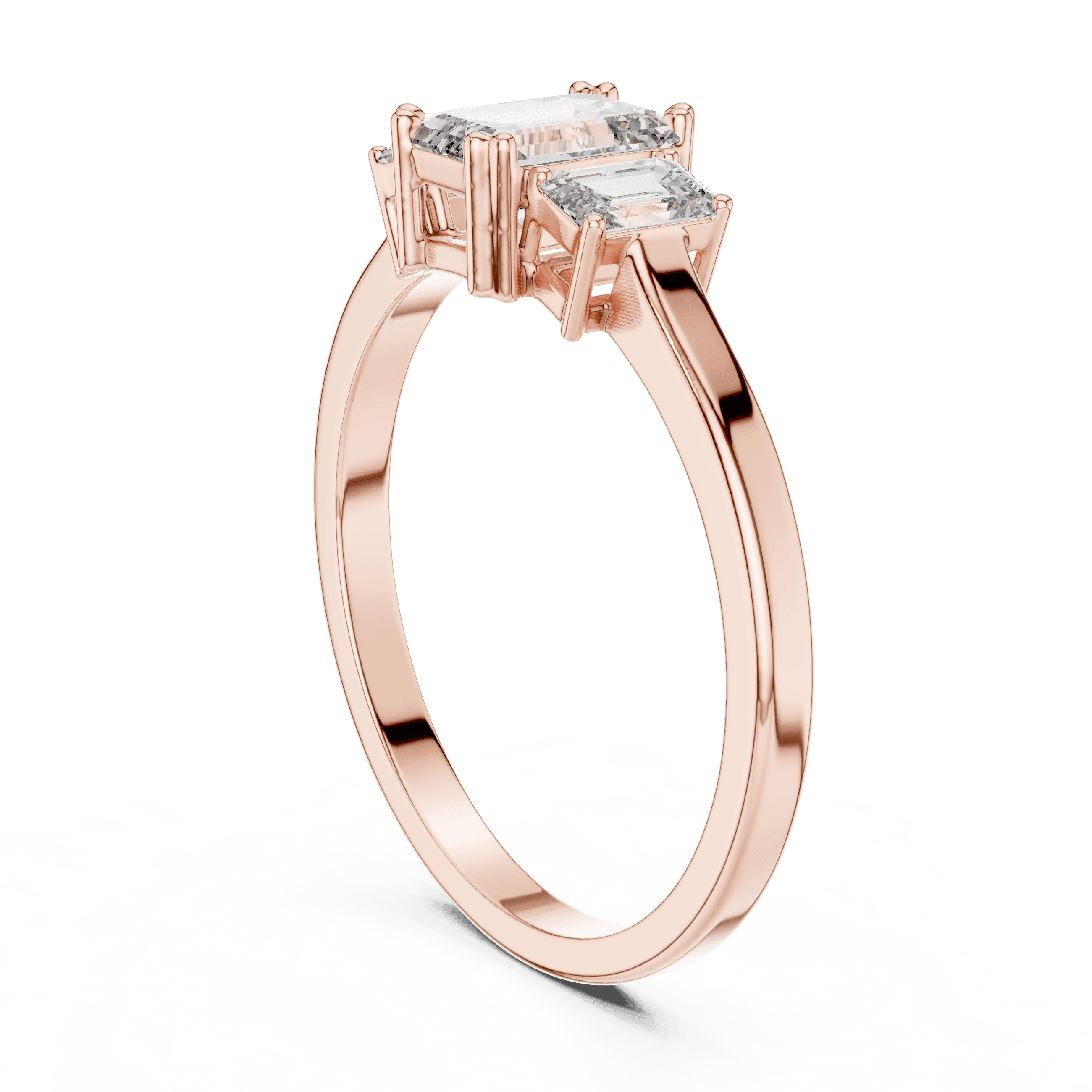 VELRYX is a statement of modern elegance designed for those who prefer their luxury subtle, intentional, and deeply personal. The design features a clean, architectural silhouette anchored by three precisely aligned emerald-cut laboratory grown diamonds that create a bold yet restrained visual rhythm across the band. As per the CAD, the ring is set with two emerald-cut laboratory grown diamonds measuring 4.00 × 2.50 mm and one emerald-cut laboratory grown diamond measuring 6.00 × 4.50 mm, bringing the total diamond count to three and a combined diamond weight of approximately 0.335 carat. The diamonds are secured in refined collet settings, allowing light to enter from multiple angles while maintaining a sleek, contemporary profile that feels effortless on the hand. Crafted in 10K gold as per CAD specifications, the ring carries an approximate gold weight of 1.839 grams in the referenced size, offering a lightweight yet premium feel ideal for everyday luxury. The smooth, polished band enhances comfort while reinforcing the ring’s minimalist aesthetic. This design is also available in 14K, 18K, and 22K gold options, allowing the wearer to choose between modern lightness, elevated richness, or traditional high-gold indulgence. Created exclusively with laboratory grown diamonds, VELRYX represents a conscious approach to fine jewelry — refined, ethical, and unapologetically modern — making it equally compelling for Gen-Z self-expression and Gen-X sophistication.