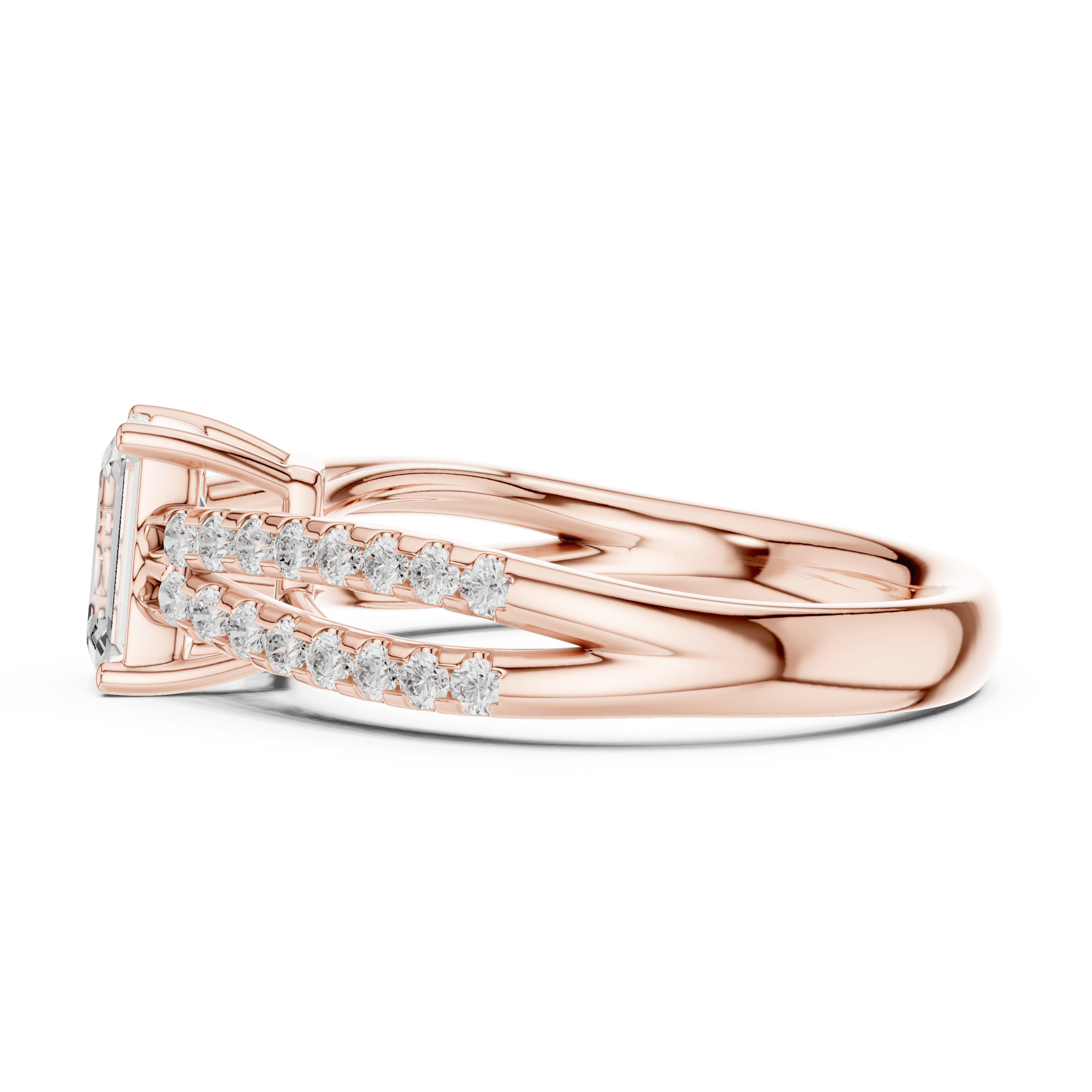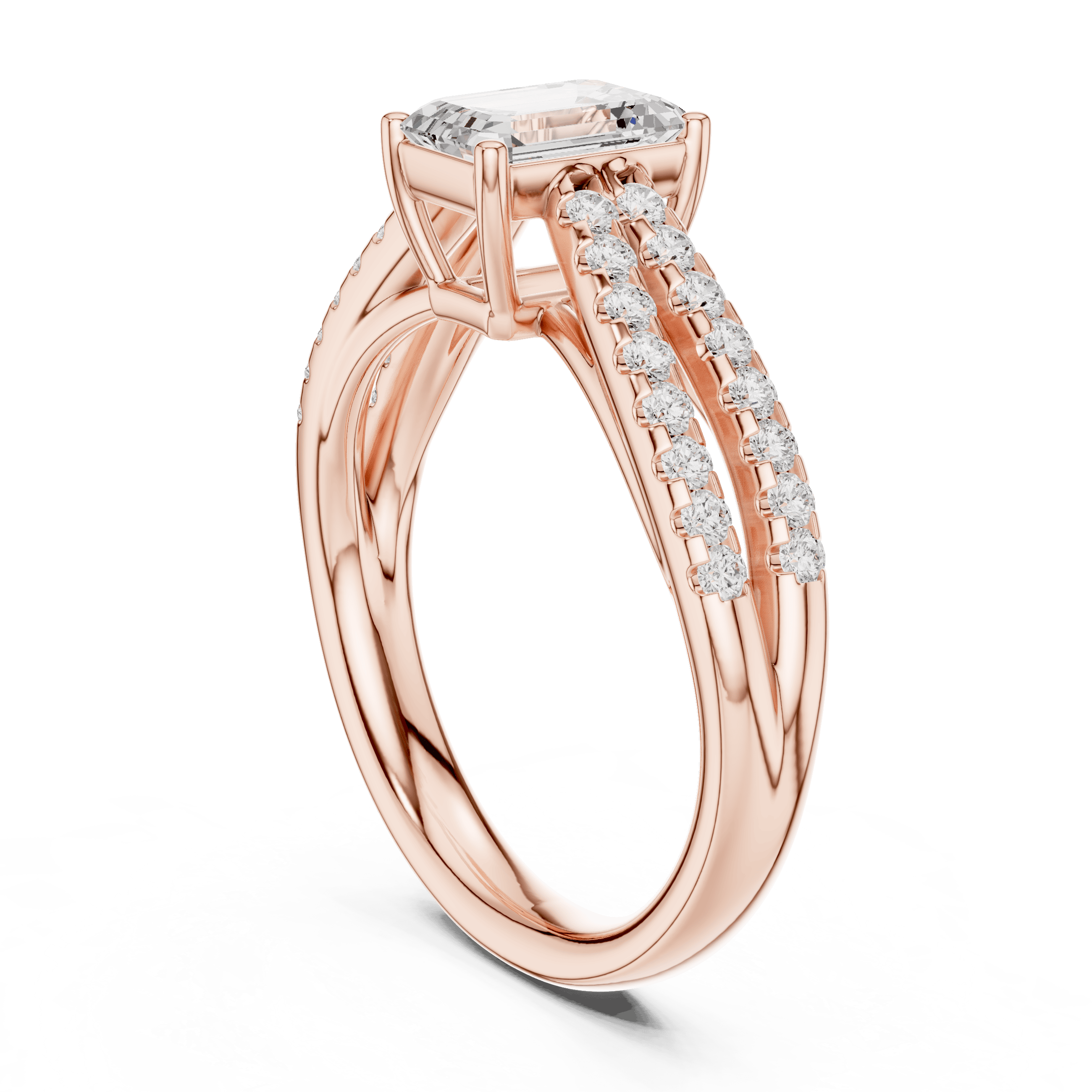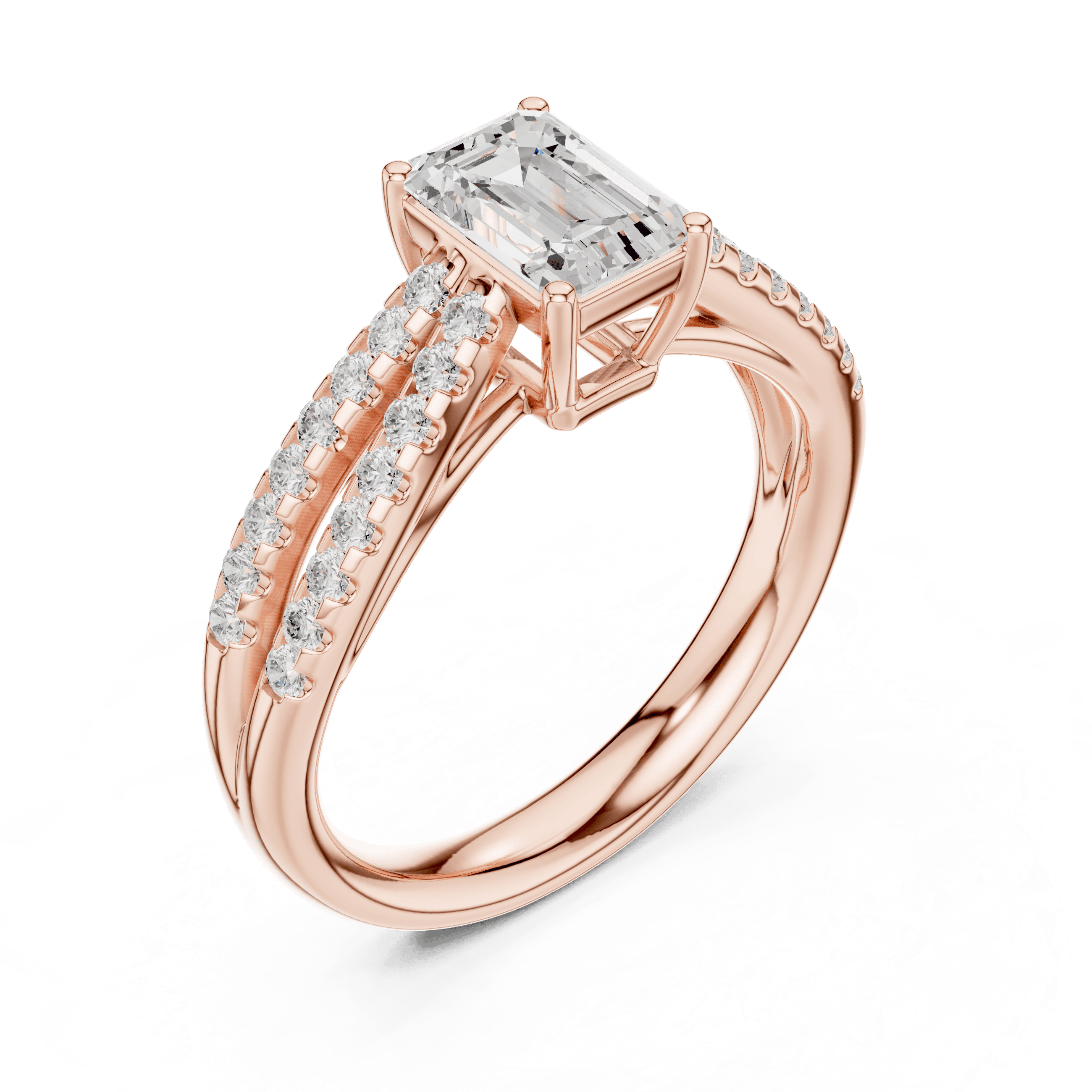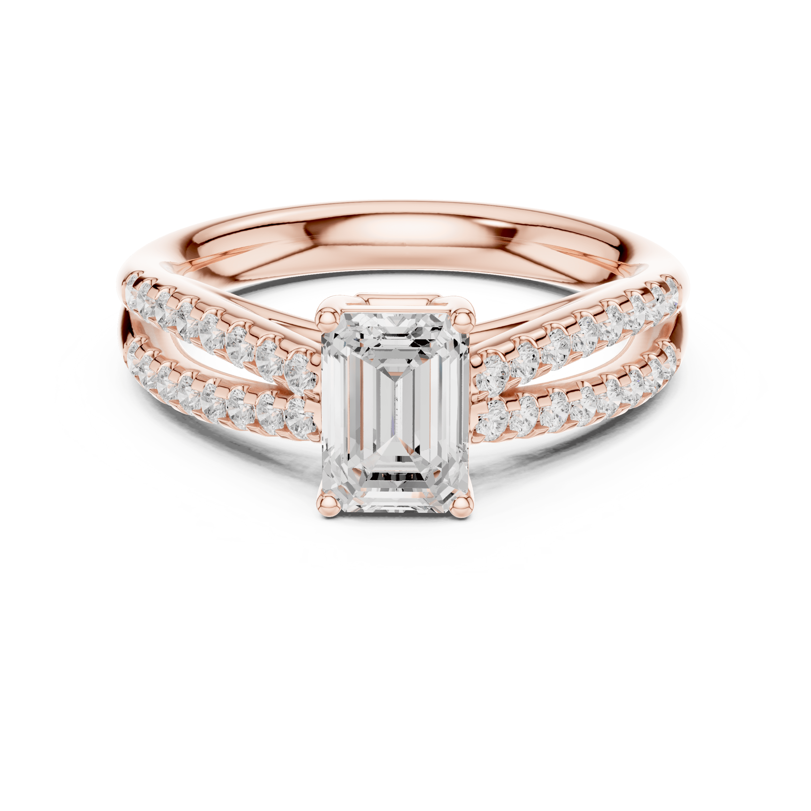 The Regalia Emerald Diamond Ring perfectly balances architectural elegance with modern luxury. With its emerald-cut centerpiece, brilliant side diamonds, and sculpted split-shank band, this ring is designed for those who value refined beauty, contemporary craftsmanship, and the brilliance of ethically chosen lab-grown diamonds