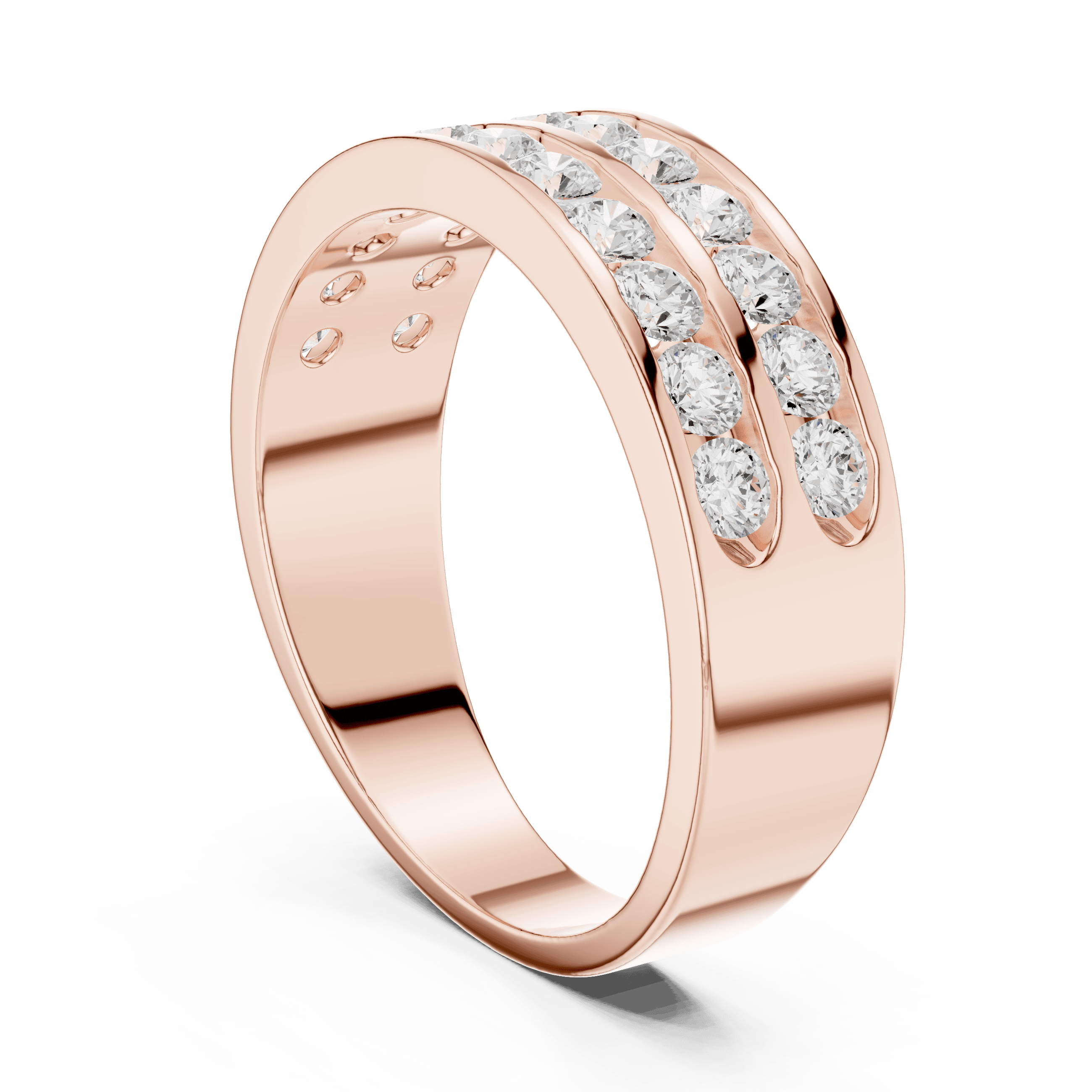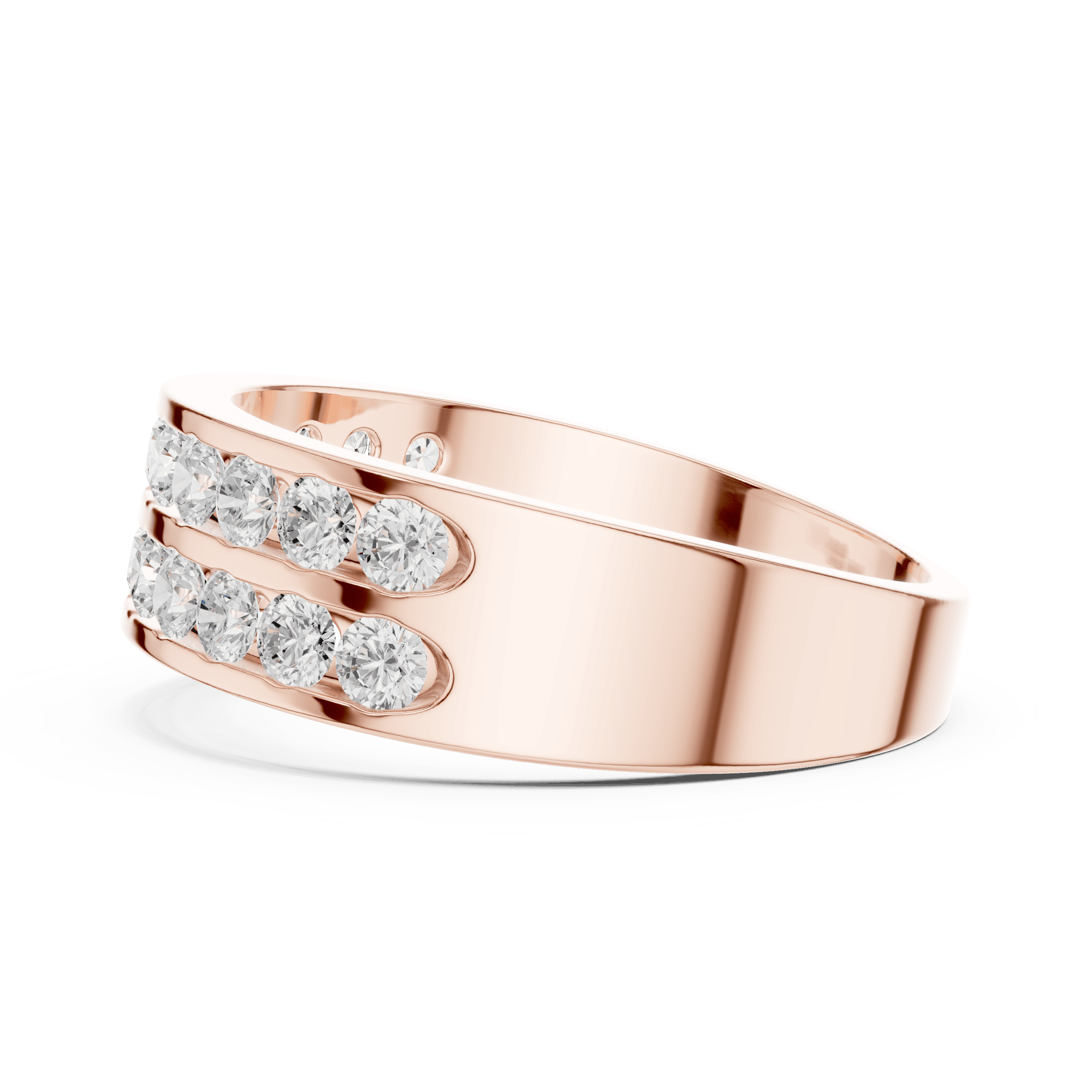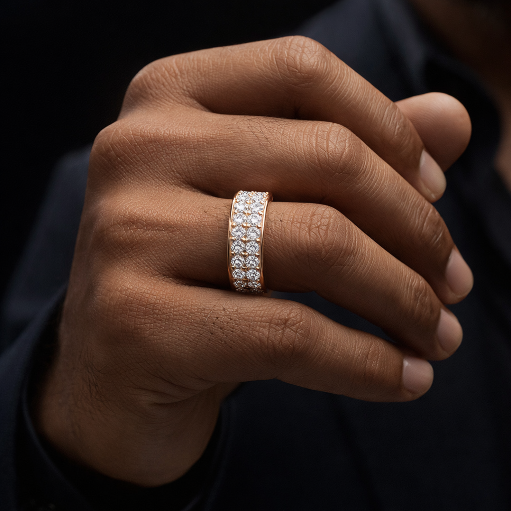 Dominara Twin-Row Band, a bold and sophisticated men’s ring designed for those who appreciate powerful elegance with modern brilliance. Featuring two perfectly aligned rows of round diamonds set across a wide structured band, this ring delivers a strong architectural presence while maintaining a refined luxury aesthetic—making it ideal for both contemporary Gen-Z styling and timeless Gen-X sophistication.