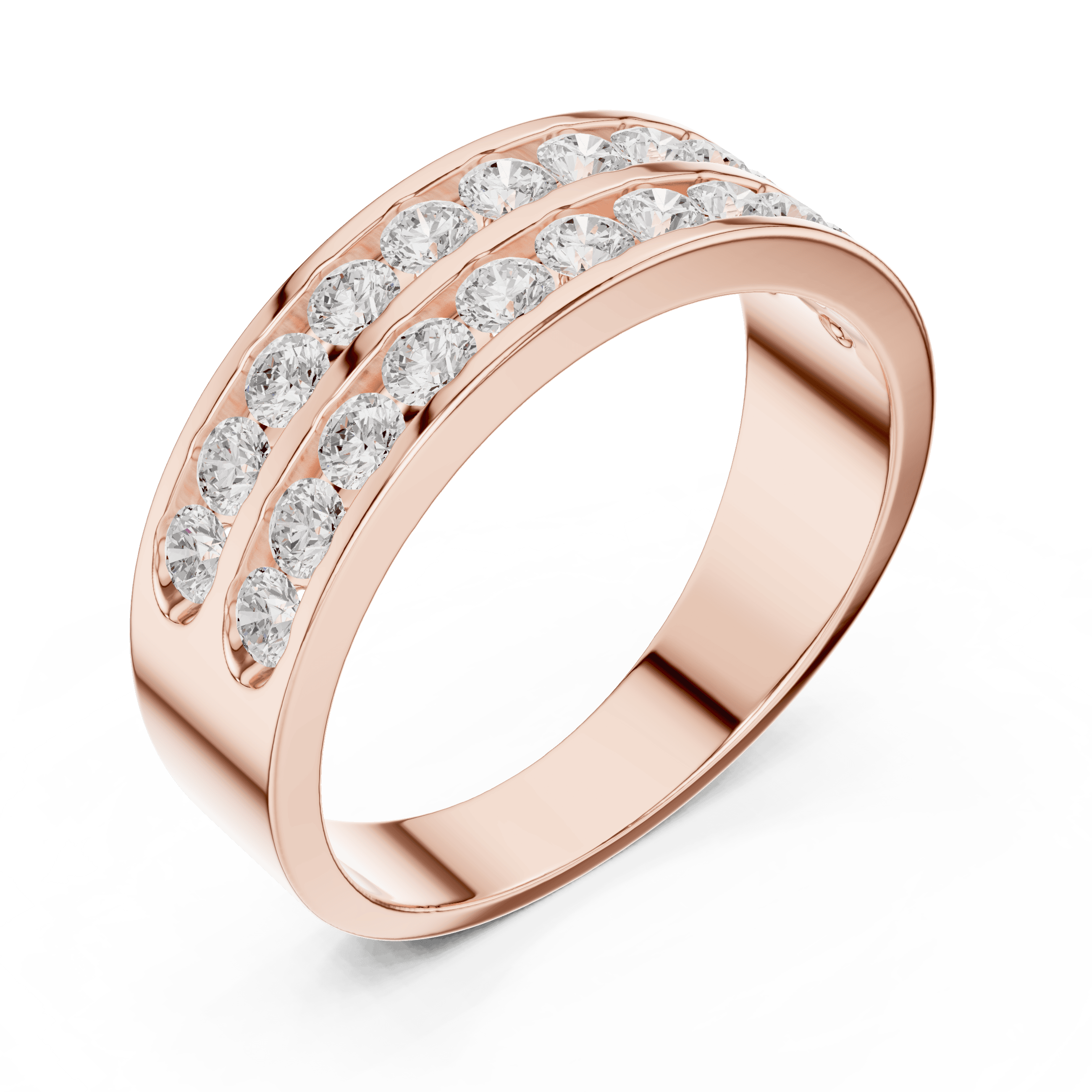 The ring showcases 22 round lab-grown diamonds arranged in a clean twin-row layout that creates a continuous line of brilliance across the top surface of the band. Each diamond measures 2.40 mm and is carefully secured in a precision setting that maximizes light reflection while maintaining a smooth and durable structure suitable for everyday wear.