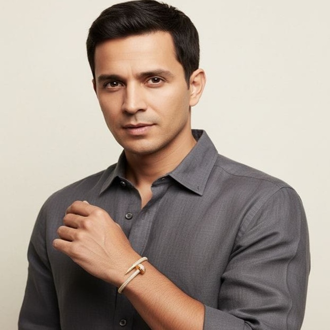 Shauryava is a study in sovereign restraint—where form, precision, and legacy converge. Sculpted in rich rose gold, the bracelet curves with deliberate intent, its fluid silhouette anchored by a commanding nail-inspired closure, a symbol long associated with resolve, continuity, and unbreakable will.