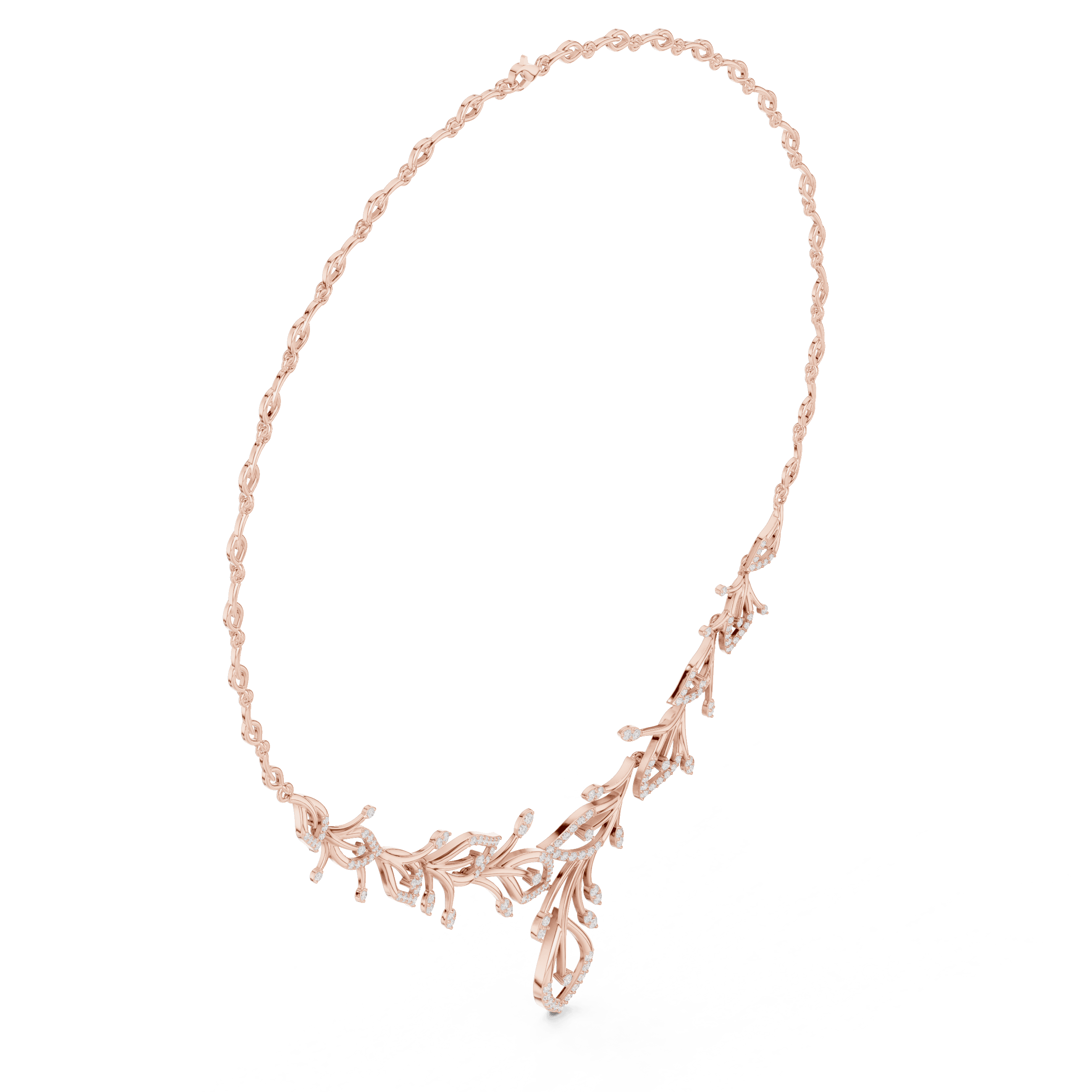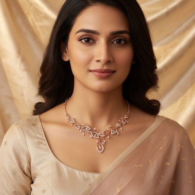 Vanika Cascade Necklace is a refined interpretation of modern fine jewellery, designed for those who appreciate artistry that feels effortless yet intentional. The composition flows like a botanical silhouette, where delicately branching forms are traced with precisely set laboratory grown diamonds, creating a sense of movement, lightness, and quiet luxury. Crafted to sit fluidly along the neckline, it transitions seamlessly from everyday sophistication to elevated occasions, appealing equally to Gen Z minimalists and Gen X connoisseurs of detail.